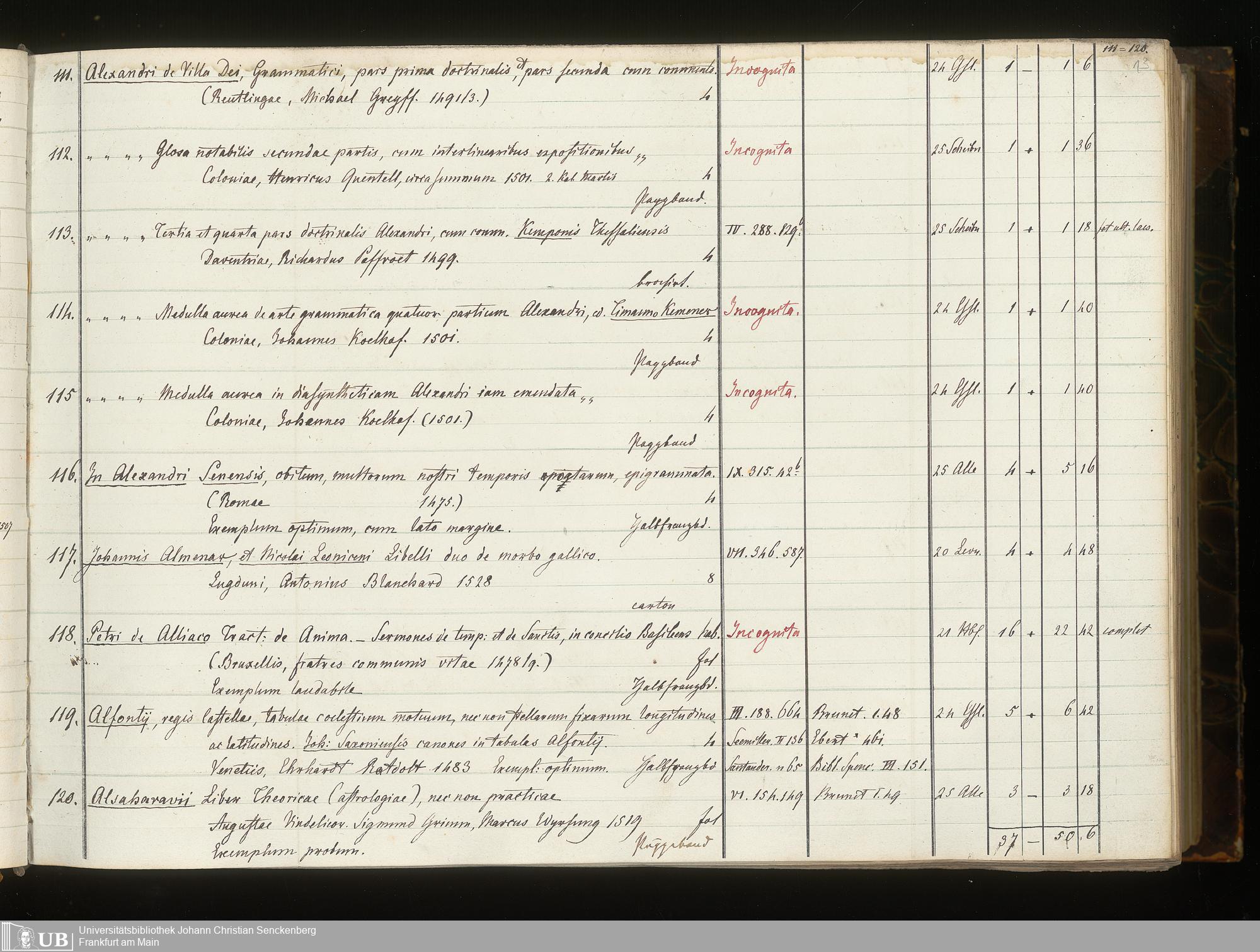Ms. Ff. G. Kloß III.6 Bd. 1 - Catalogus Bibliothecae G. Kloss. Palaeotyporum Latinorum A - K