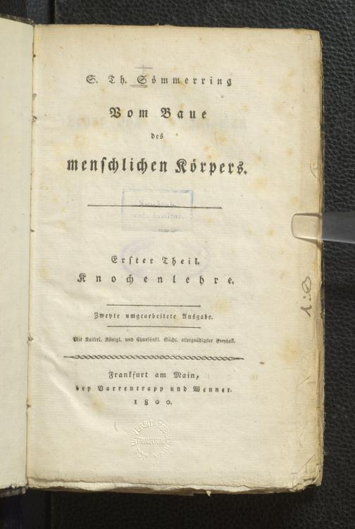 Soe 11 Bd. 1 [1. Ex.] - Vom Baue des menschlichen Körpers. Erster Theil. Knochenlehre. Zweyte umgearbeitete Ausgabe.