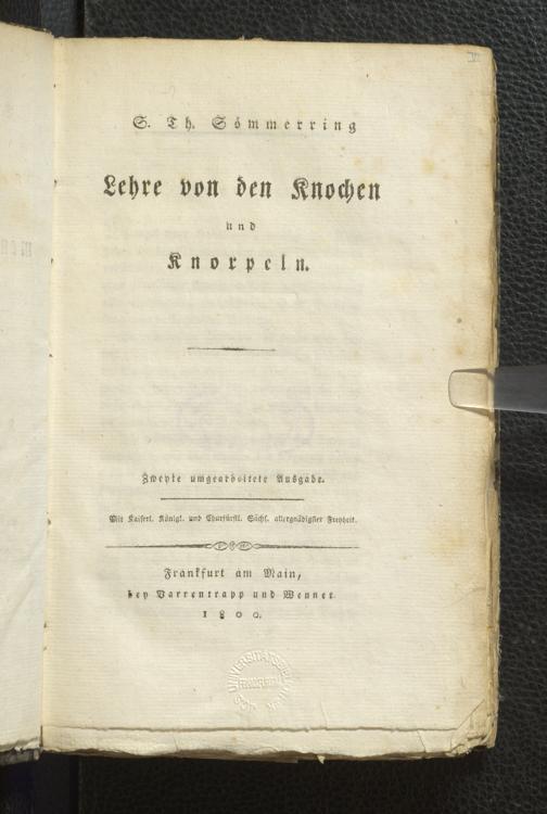 Soe 11 Bd. 1 [1. Ex.] - Vom Baue des menschlichen Körpers. Erster Theil. Knochenlehre. Zweyte umgearbeitete Ausgabe.