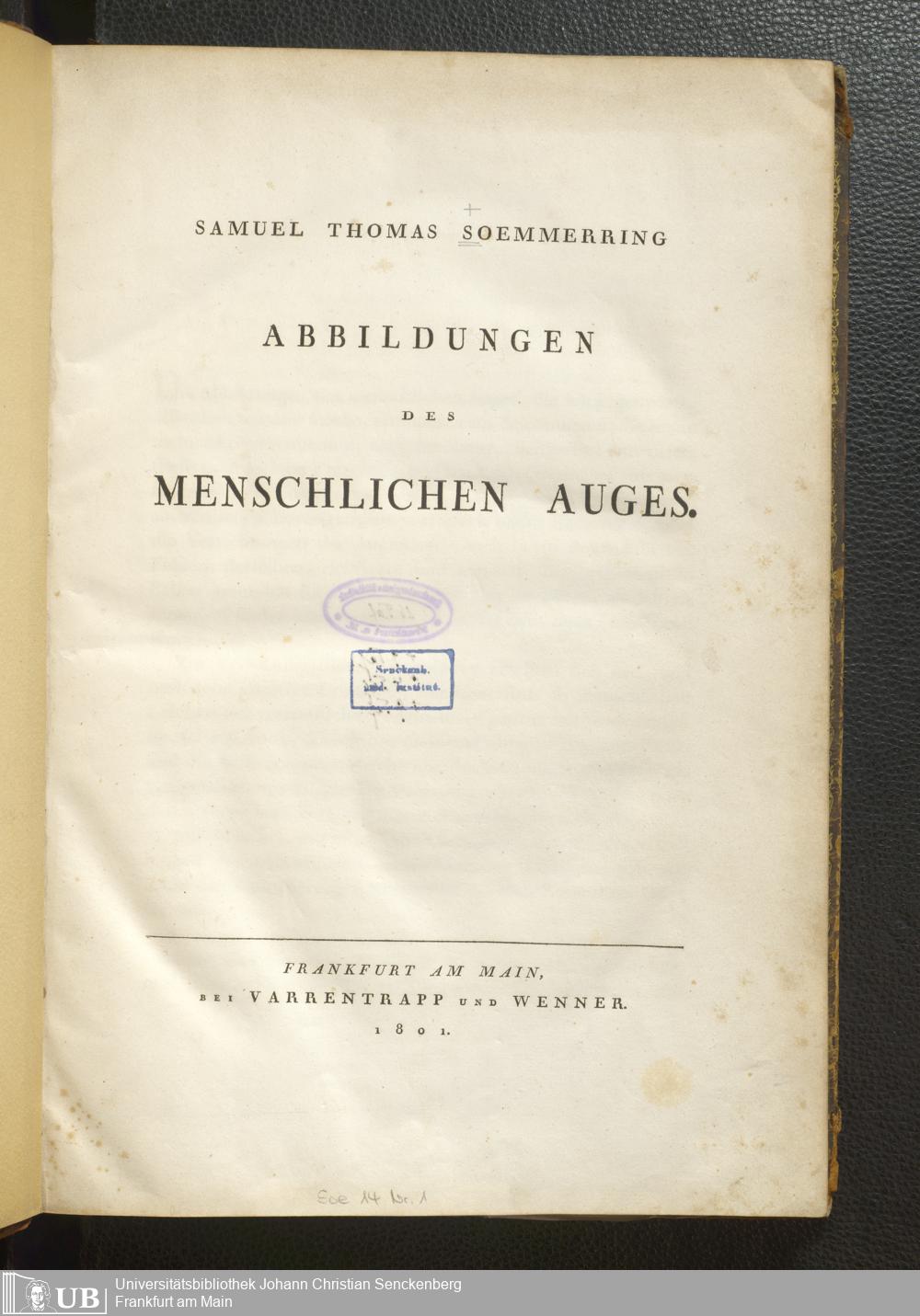 Soe 14 - Abbildungen des menschlichen Auges. Abbildungen des menschlichen Hoerorganes. Abbildungen der menschlichen Organe des Geschmackes und der Stimme. Abbildungen der menschlichen Organe des Geruches
