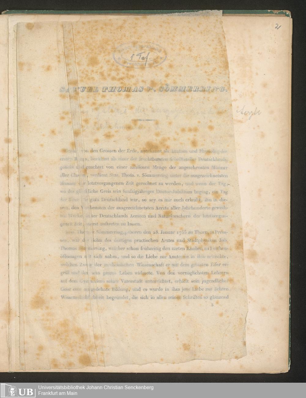 Soe 67 - Samuel Thomas von Soemmerring. Lebensbeschreibung