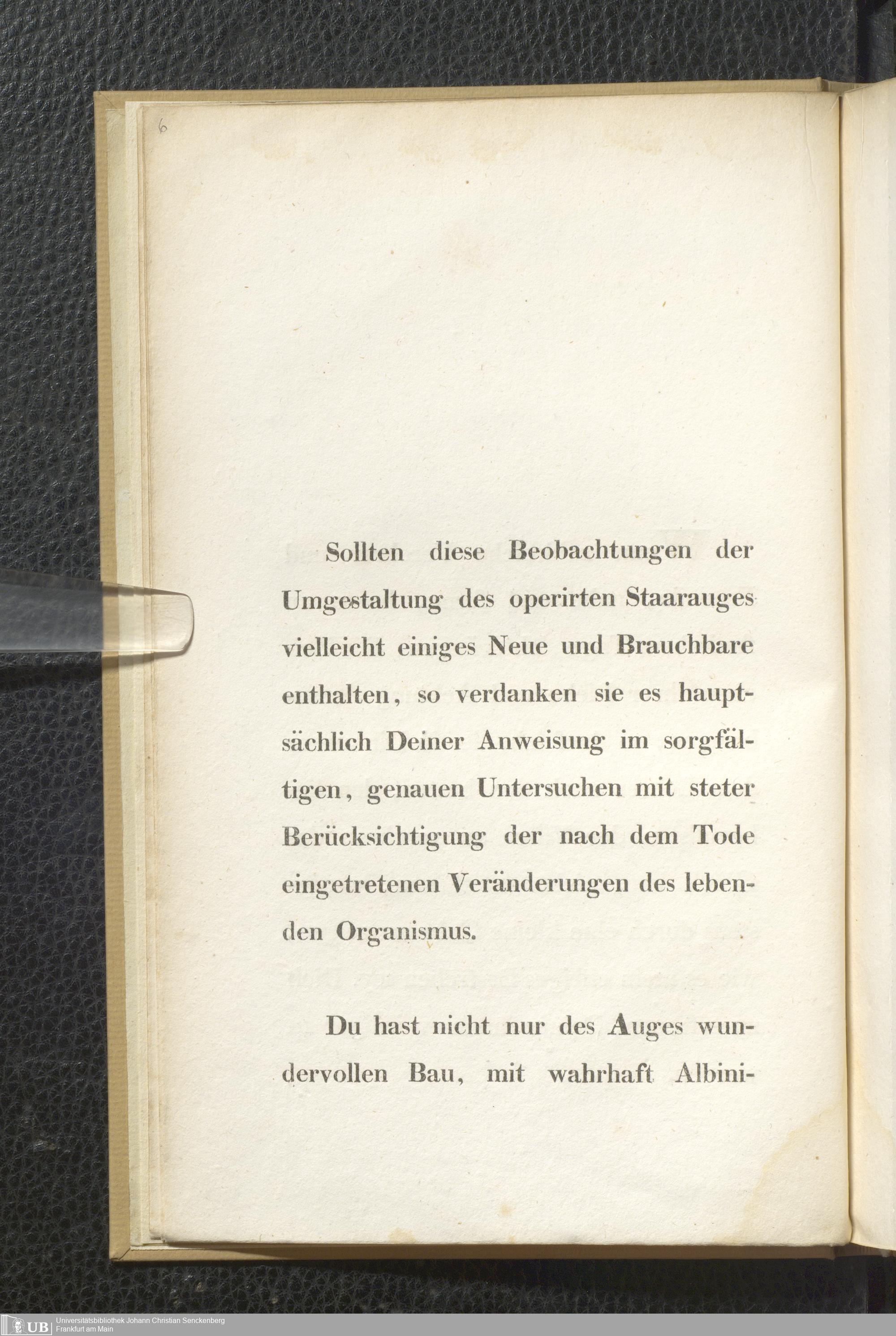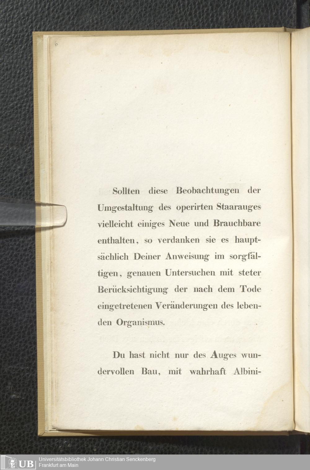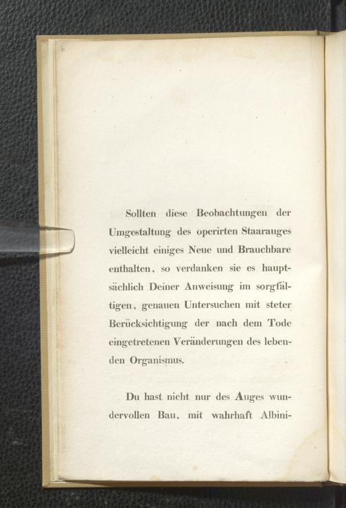 Soe 37 - Beobachtungen über die organischen Veränderungen im Auge nach Staaroperationen. Meinem hochverehrten und innigst geliebten Vater Samuel Thomas von Soemmerring am 7ten April 1828 dem festlichen Tage seines fünfzigjährigen Doctorjubiläums überreicht