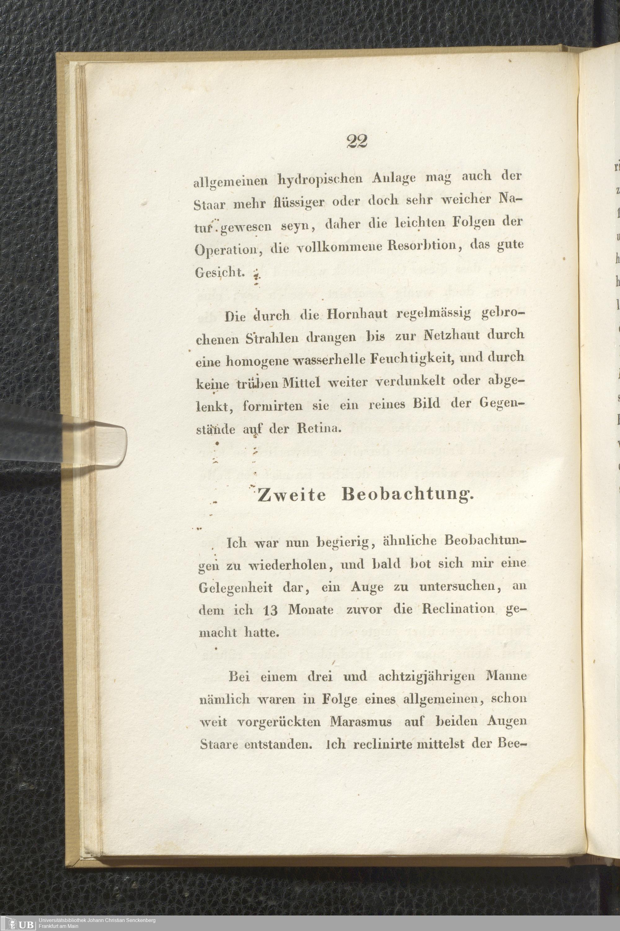 Soe 37 - Beobachtungen über die organischen Veränderungen im Auge nach Staaroperationen. Meinem hochverehrten und innigst geliebten Vater Samuel Thomas von Soemmerring am 7ten April 1828 dem festlichen Tage seines fünfzigjährigen Doctorjubiläums überreicht