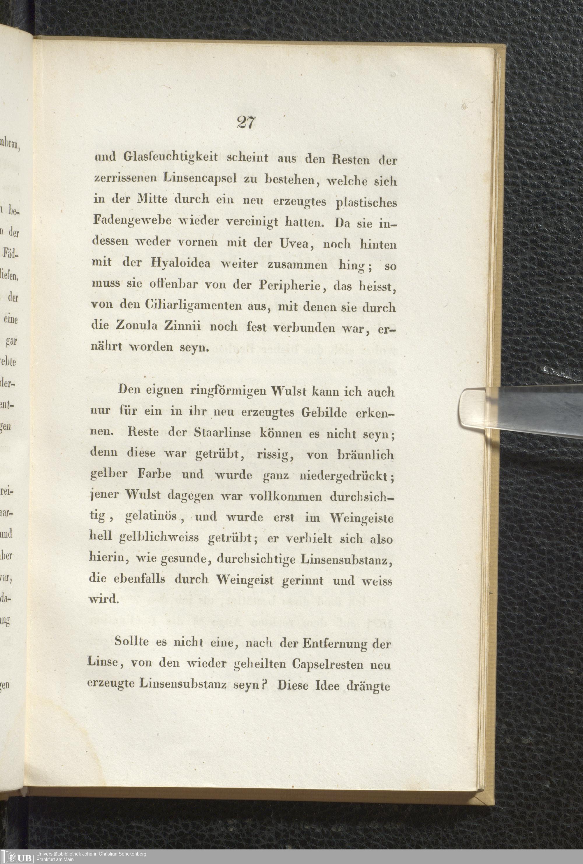 Soe 37 - Beobachtungen über die organischen Veränderungen im Auge nach Staaroperationen. Meinem hochverehrten und innigst geliebten Vater Samuel Thomas von Soemmerring am 7ten April 1828 dem festlichen Tage seines fünfzigjährigen Doctorjubiläums überreicht