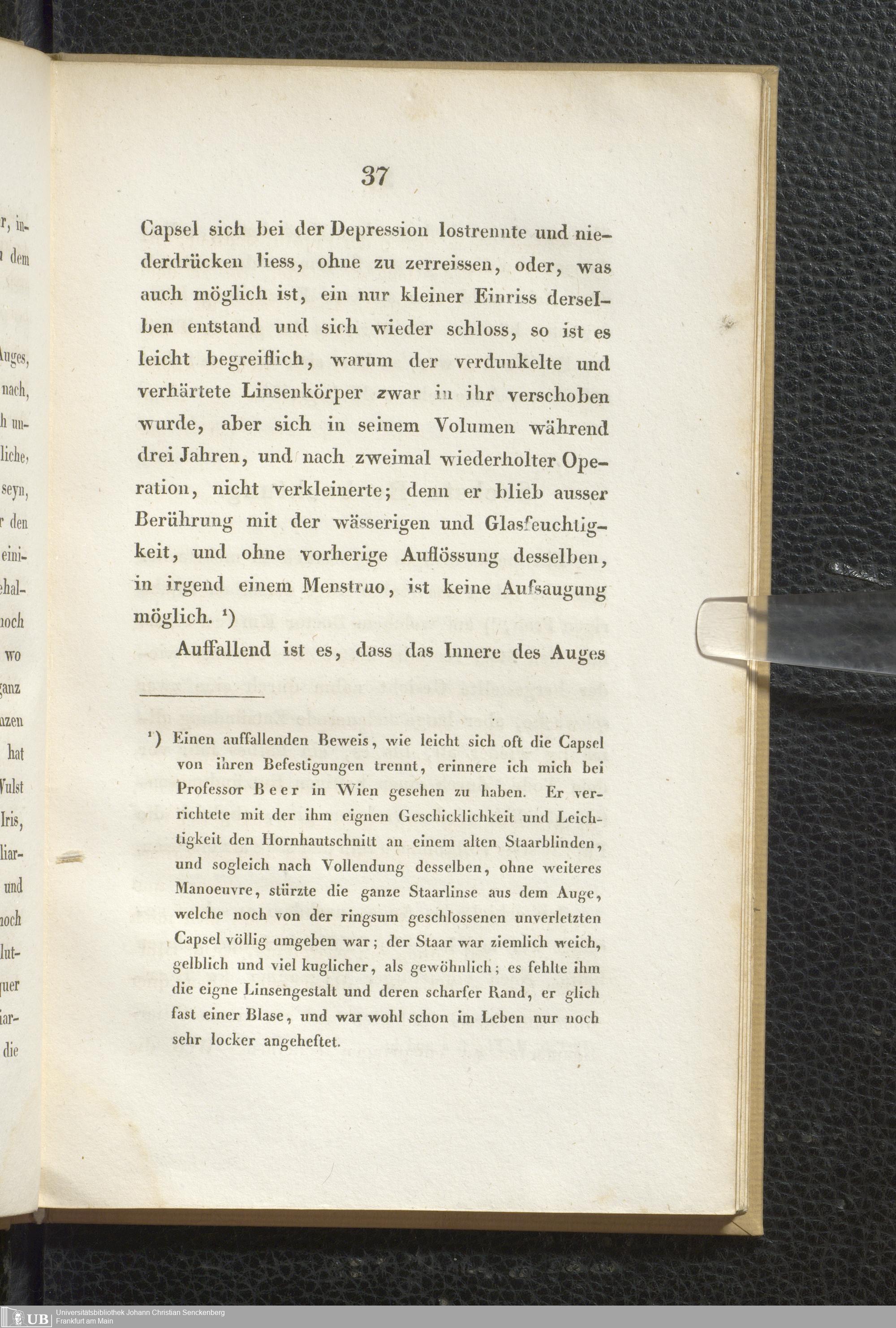 Soe 37 - Beobachtungen über die organischen Veränderungen im Auge nach Staaroperationen. Meinem hochverehrten und innigst geliebten Vater Samuel Thomas von Soemmerring am 7ten April 1828 dem festlichen Tage seines fünfzigjährigen Doctorjubiläums überreicht