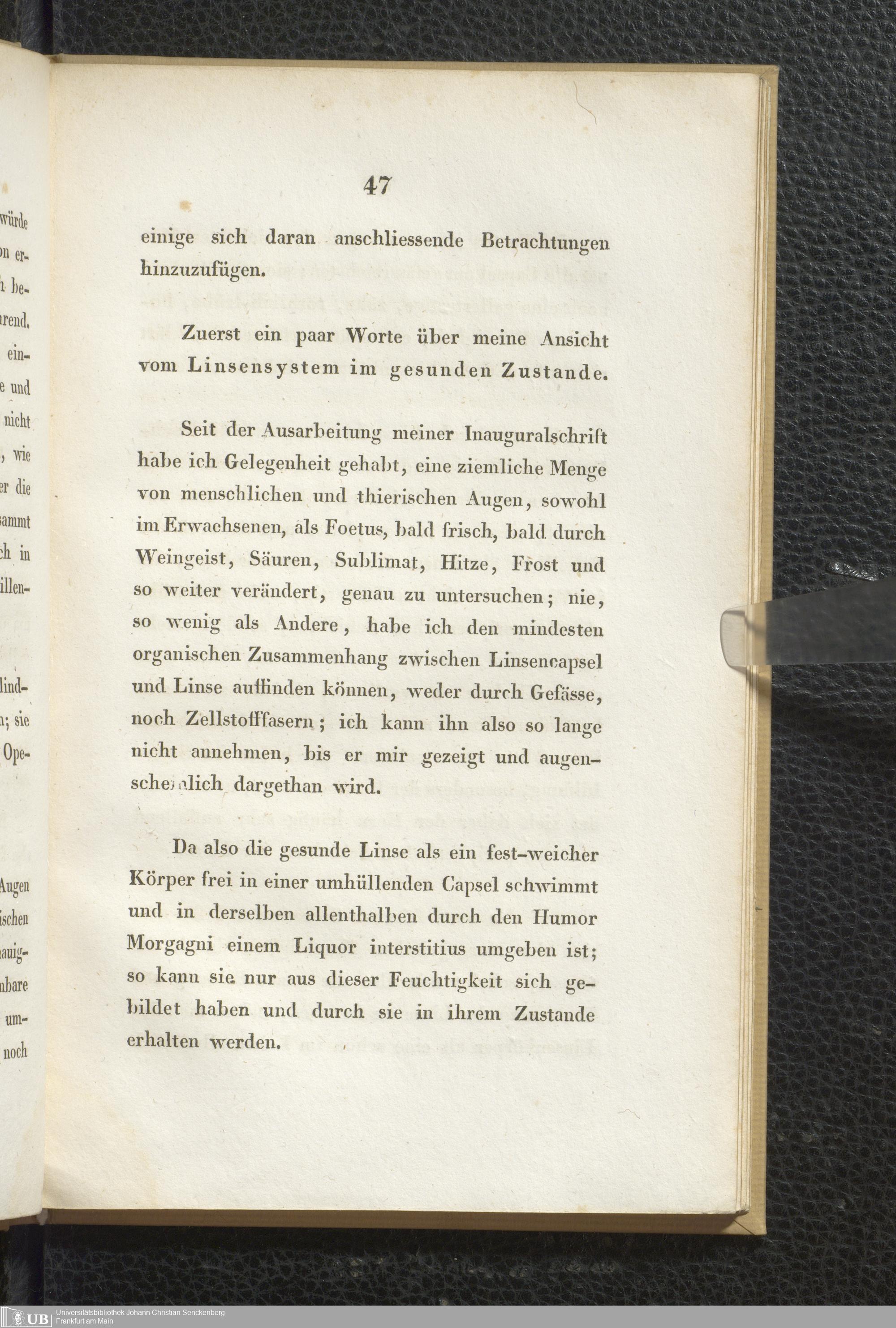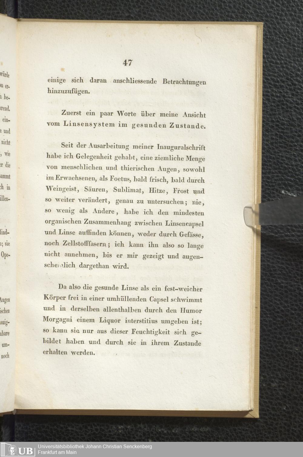 Soe 37 - Beobachtungen über die organischen Veränderungen im Auge nach Staaroperationen. Meinem hochverehrten und innigst geliebten Vater Samuel Thomas von Soemmerring am 7ten April 1828 dem festlichen Tage seines fünfzigjährigen Doctorjubiläums überreicht