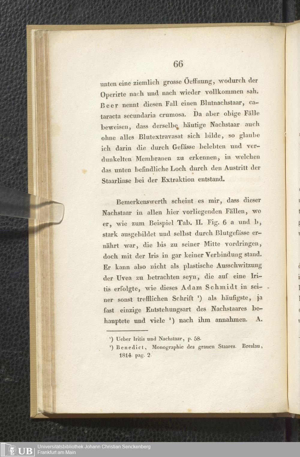 Soe 37 - Beobachtungen über die organischen Veränderungen im Auge nach Staaroperationen. Meinem hochverehrten und innigst geliebten Vater Samuel Thomas von Soemmerring am 7ten April 1828 dem festlichen Tage seines fünfzigjährigen Doctorjubiläums überreicht