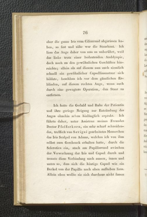 Soe 37 - Beobachtungen über die organischen Veränderungen im Auge nach Staaroperationen. Meinem hochverehrten und innigst geliebten Vater Samuel Thomas von Soemmerring am 7ten April 1828 dem festlichen Tage seines fünfzigjährigen Doctorjubiläums überreicht