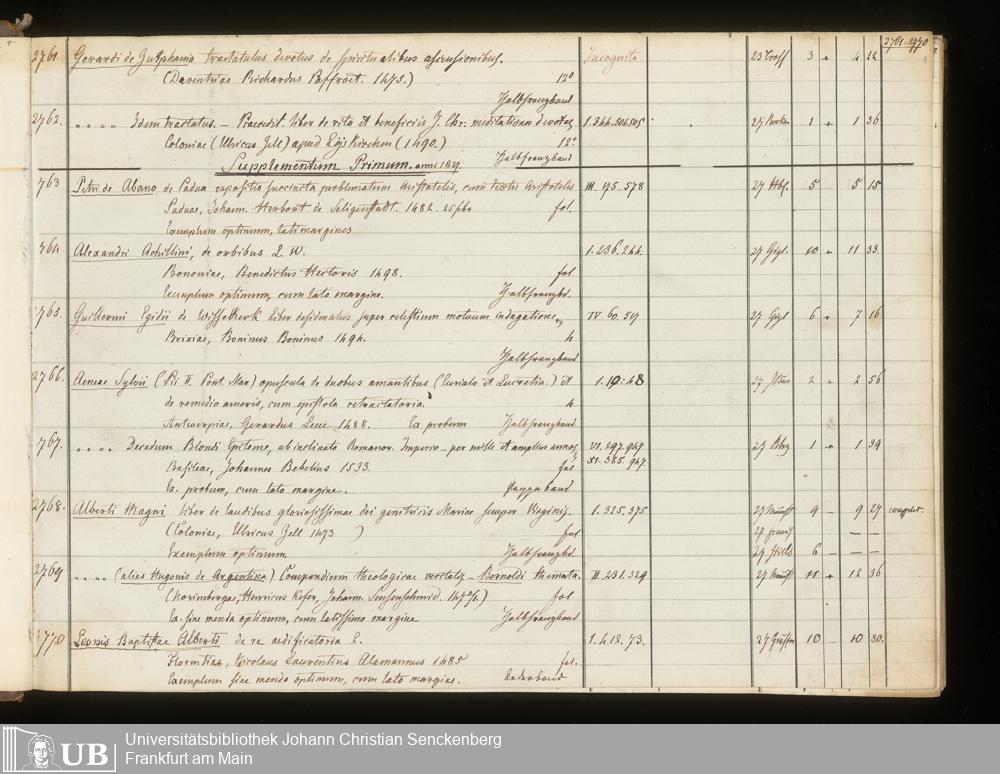 Ms. Ff. G. Kloß III.6 Bd. 3 - Catalogus Bibliothecae G. Kloss. Palaeotyporum [Latinorum]. Supplement I - VII