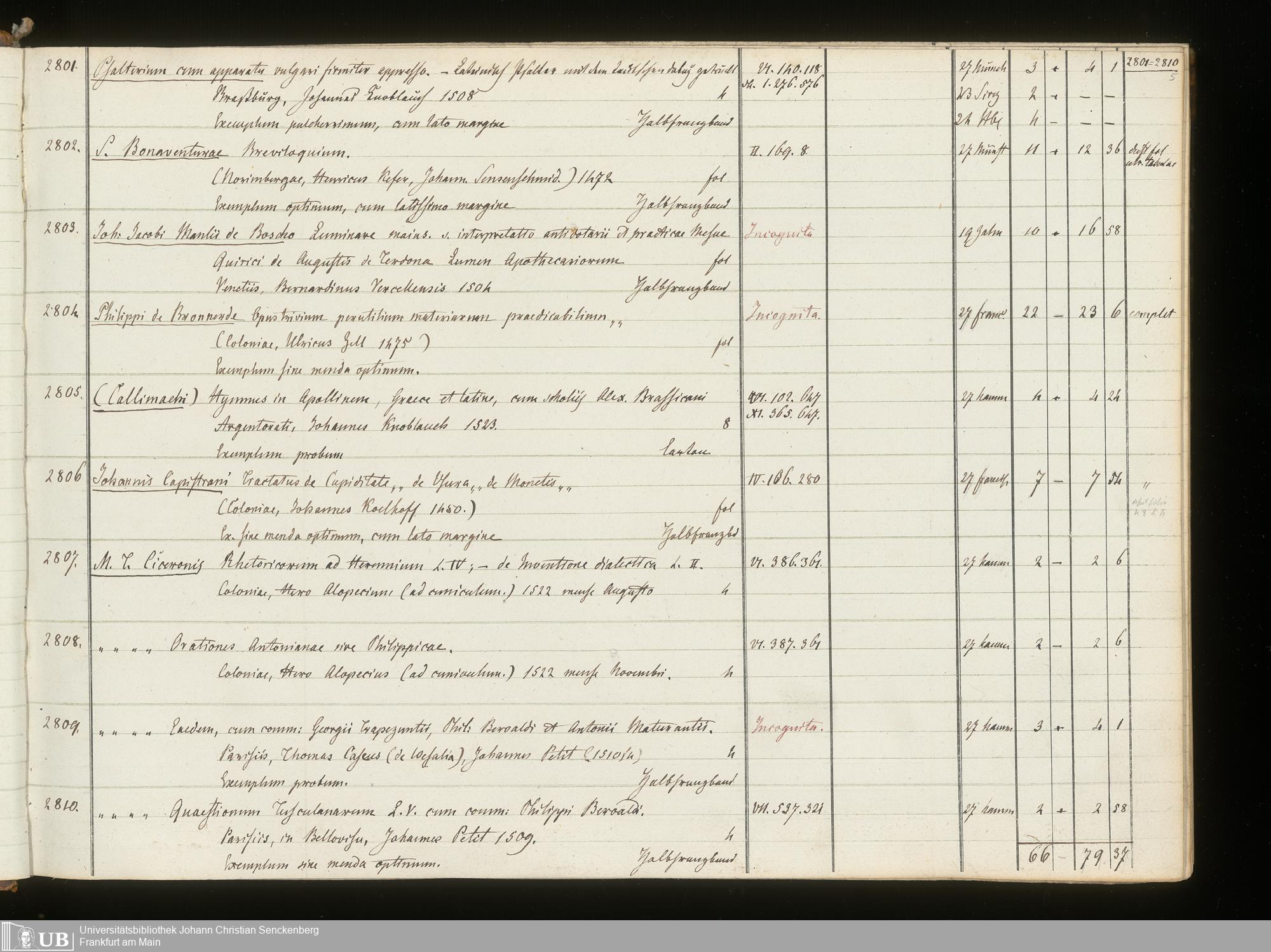 Ms. Ff. G. Kloß III.6 Bd. 3 - Catalogus Bibliothecae G. Kloss. Palaeotyporum [Latinorum]. Supplement I - VII