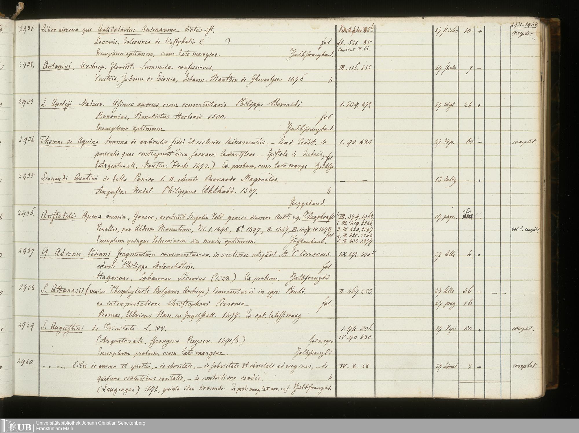 Ms. Ff. G. Kloß III.6 Bd. 3 - Catalogus Bibliothecae G. Kloss. Palaeotyporum [Latinorum]. Supplement I - VII