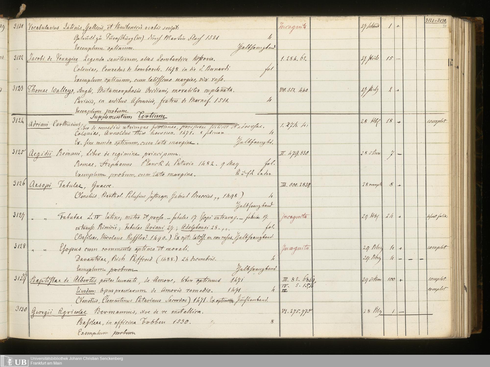 Ms. Ff. G. Kloß III.6 Bd. 3 - Catalogus Bibliothecae G. Kloss. Palaeotyporum [Latinorum]. Supplement I - VII