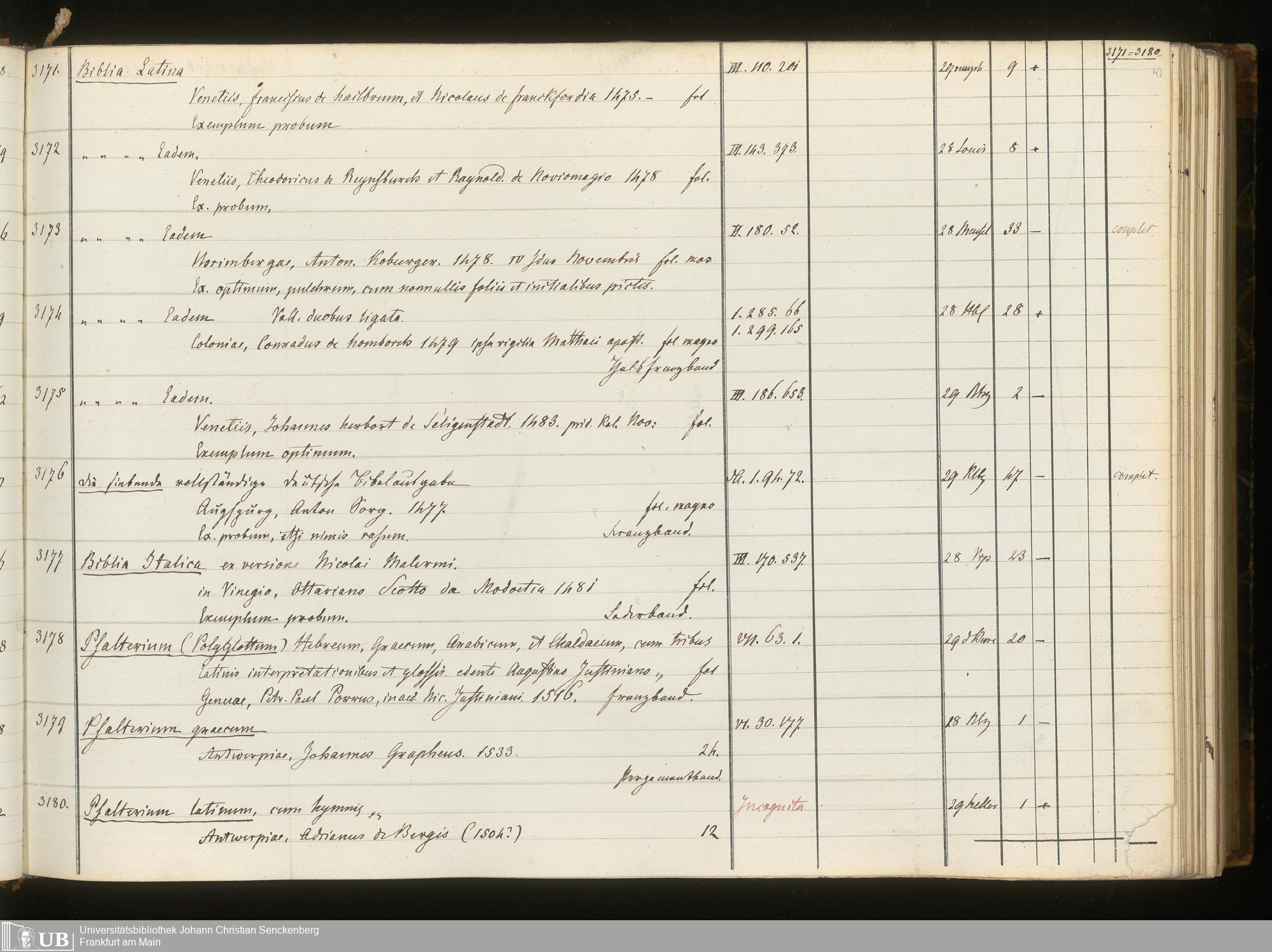 Ms. Ff. G. Kloß III.6 Bd. 3 - Catalogus Bibliothecae G. Kloss. Palaeotyporum [Latinorum]. Supplement I - VII