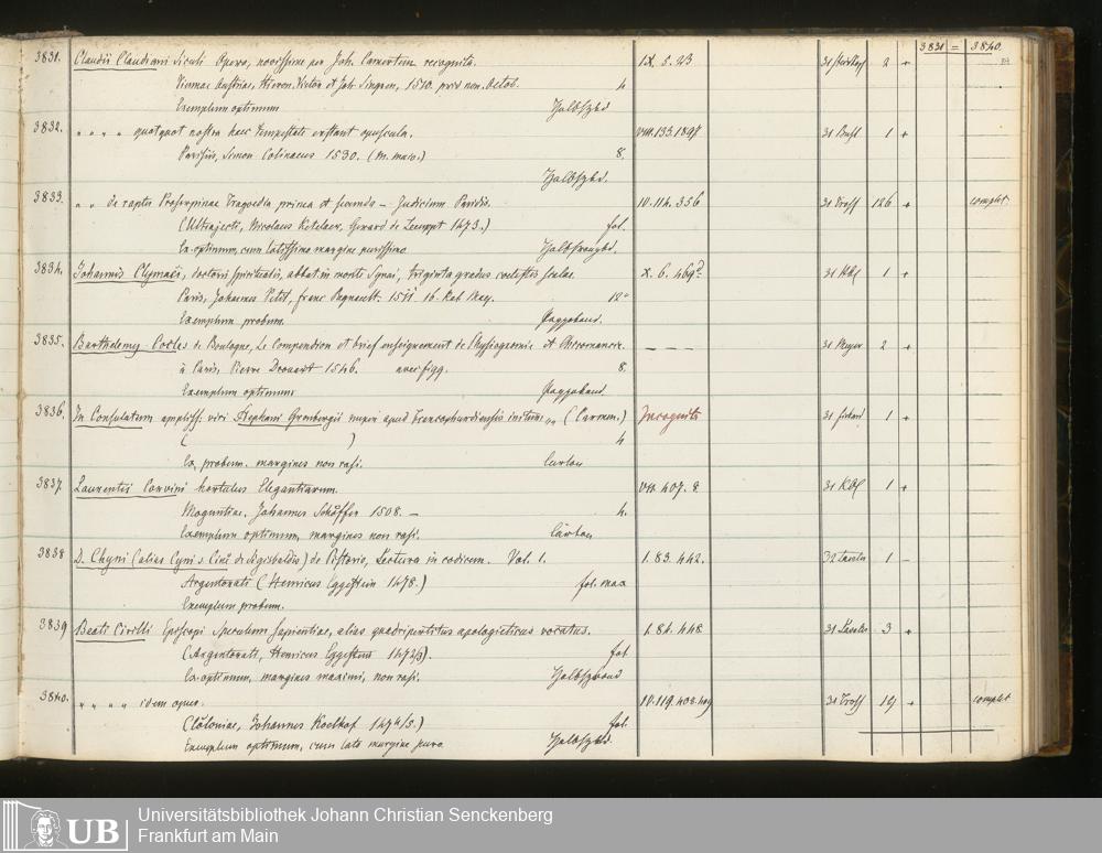 Ms. Ff. G. Kloß III.6 Bd. 3 - Catalogus Bibliothecae G. Kloss. Palaeotyporum [Latinorum]. Supplement I - VII