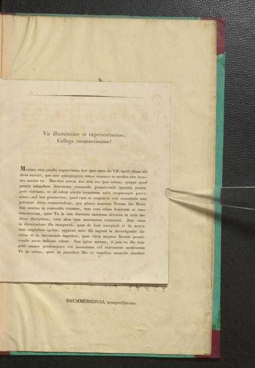 Soe 40 - Glückwunsch zum 50jährigen Doktorjubiläum Samuel Thomas von Soemmerrings von der Münchener Akademie des Wissenschaft