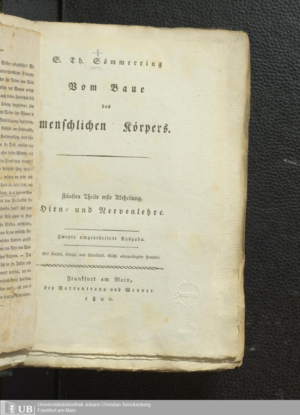Soe 11 Bd. 5,1 [2. Ex.] - Vom Baue des menschlichen Körpers. Fünften Theils erste Abtheilung. Hirn- und Nervenlehre. Zweyte umgearbeitete Ausgabe.