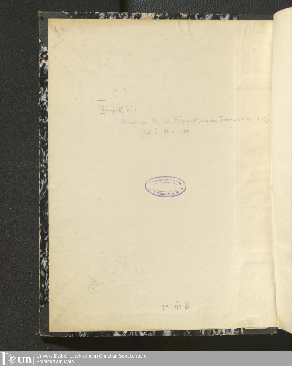 4˚ Hs 6 Bd. 1 - Briefe an Dr. Eduard Rüppell aus den Jahren 1819 bis 1878