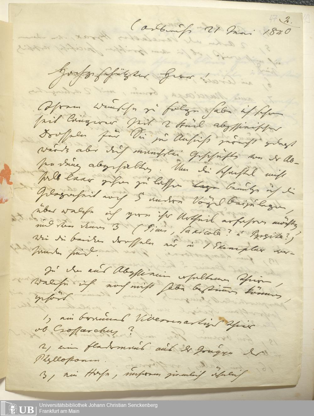 4˚ Hs 6 Bd. 1 - Briefe an Dr. Eduard Rüppell aus den Jahren 1819 bis 1878