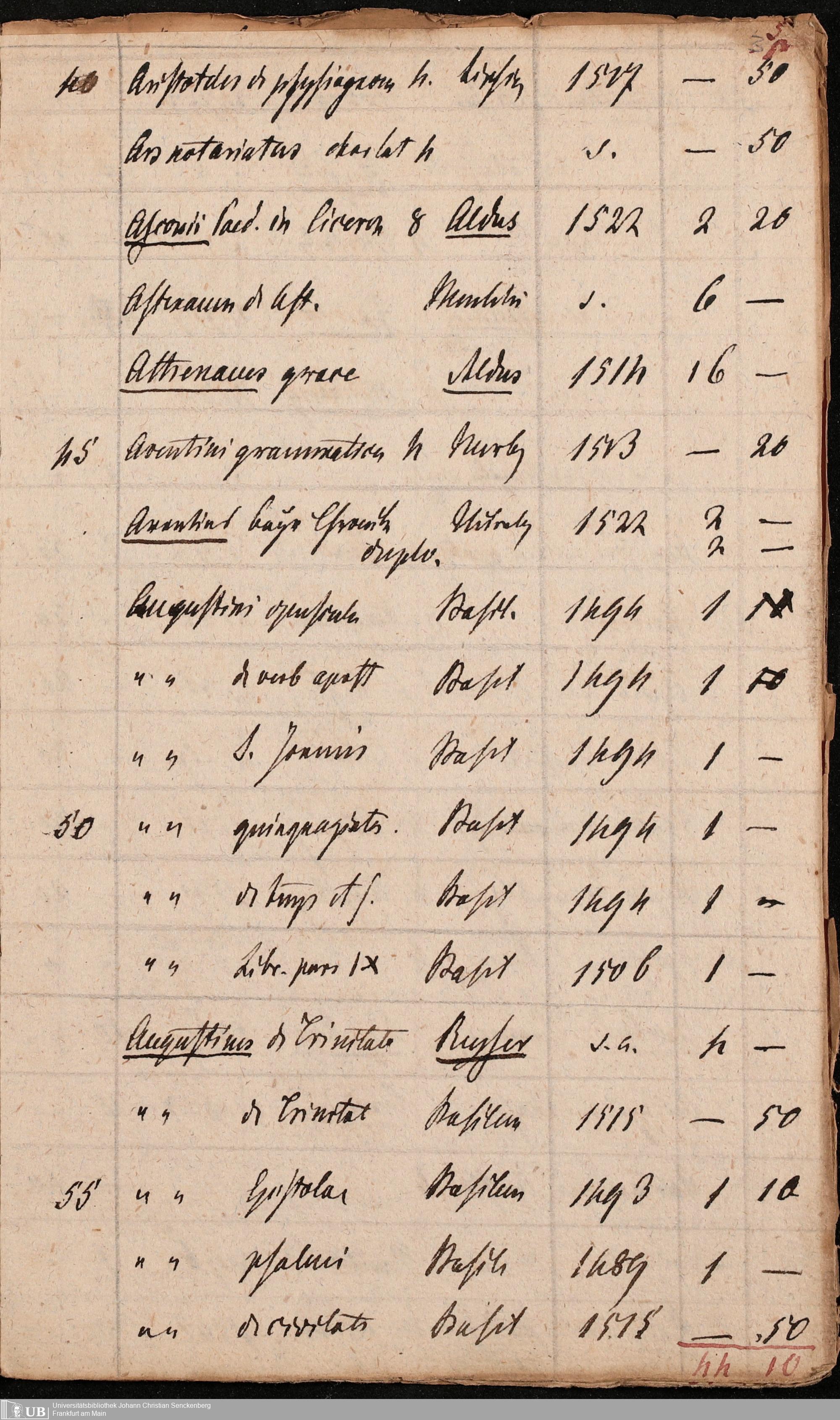 Ms. Ff. G. Kloß Nachlaßergänzung III.1 - Alphabetisches Verzeichnis alter Drucke des 15. und 16. Jahrhunderts