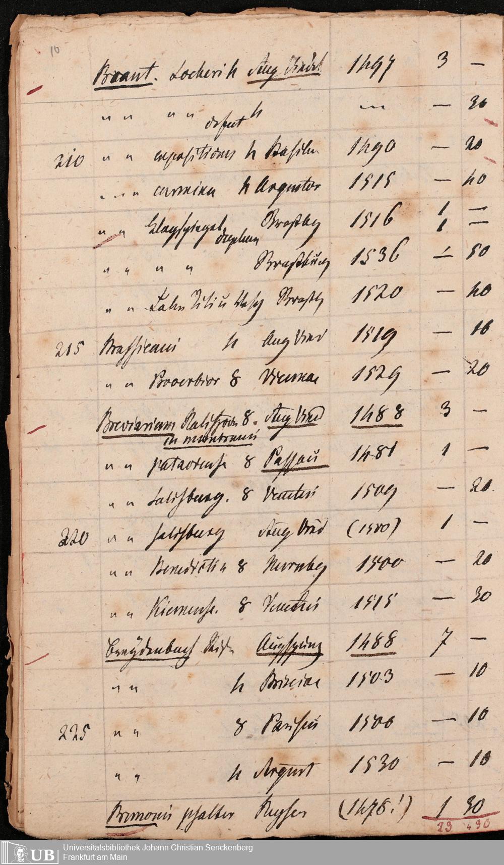 Ms. Ff. G. Kloß Nachlaßergänzung III.1 - Alphabetisches Verzeichnis alter Drucke des 15. und 16. Jahrhunderts