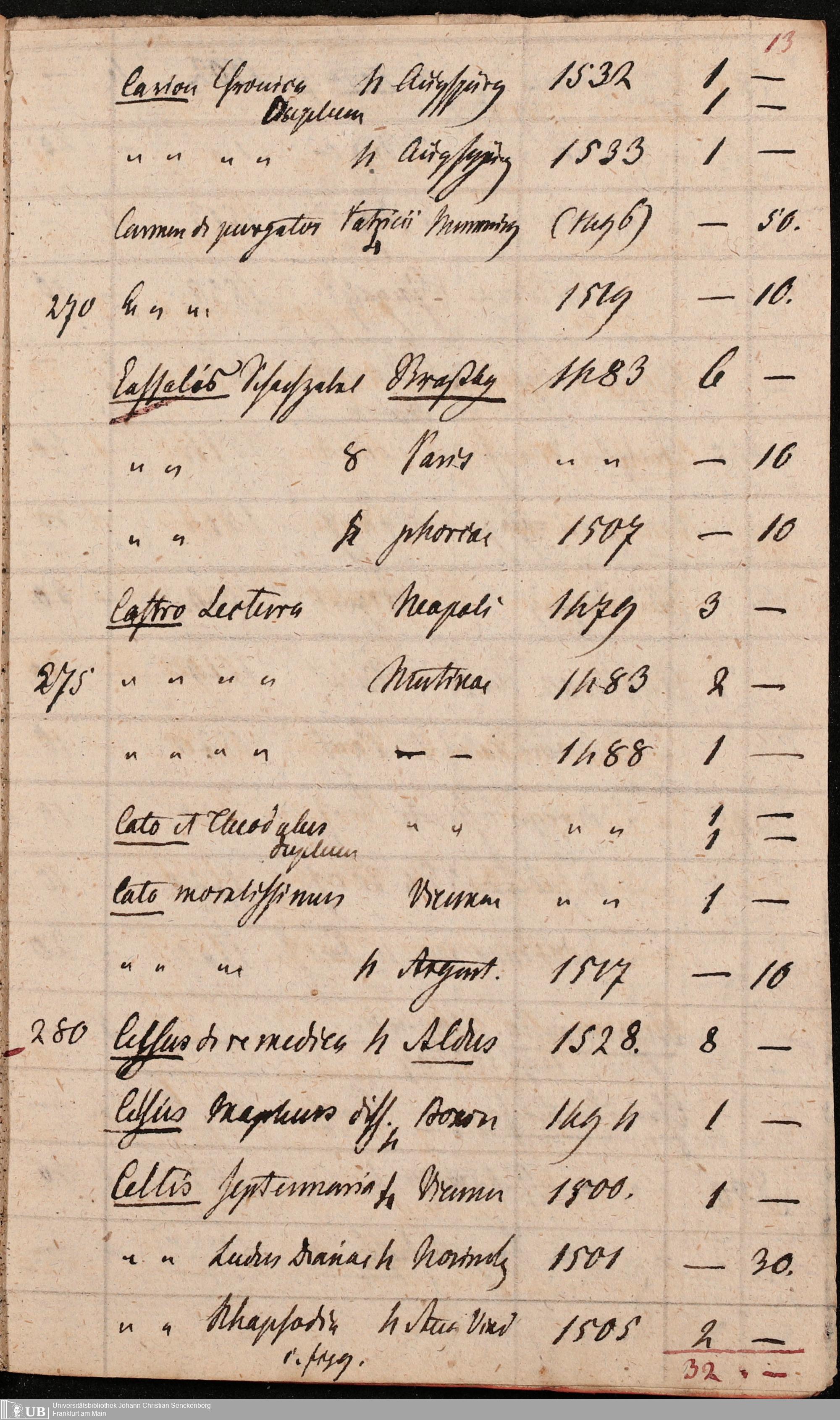 Ms. Ff. G. Kloß Nachlaßergänzung III.1 - Alphabetisches Verzeichnis alter Drucke des 15. und 16. Jahrhunderts