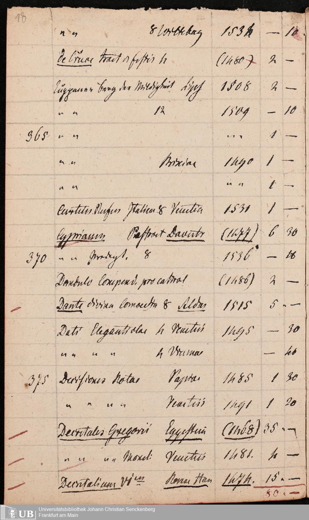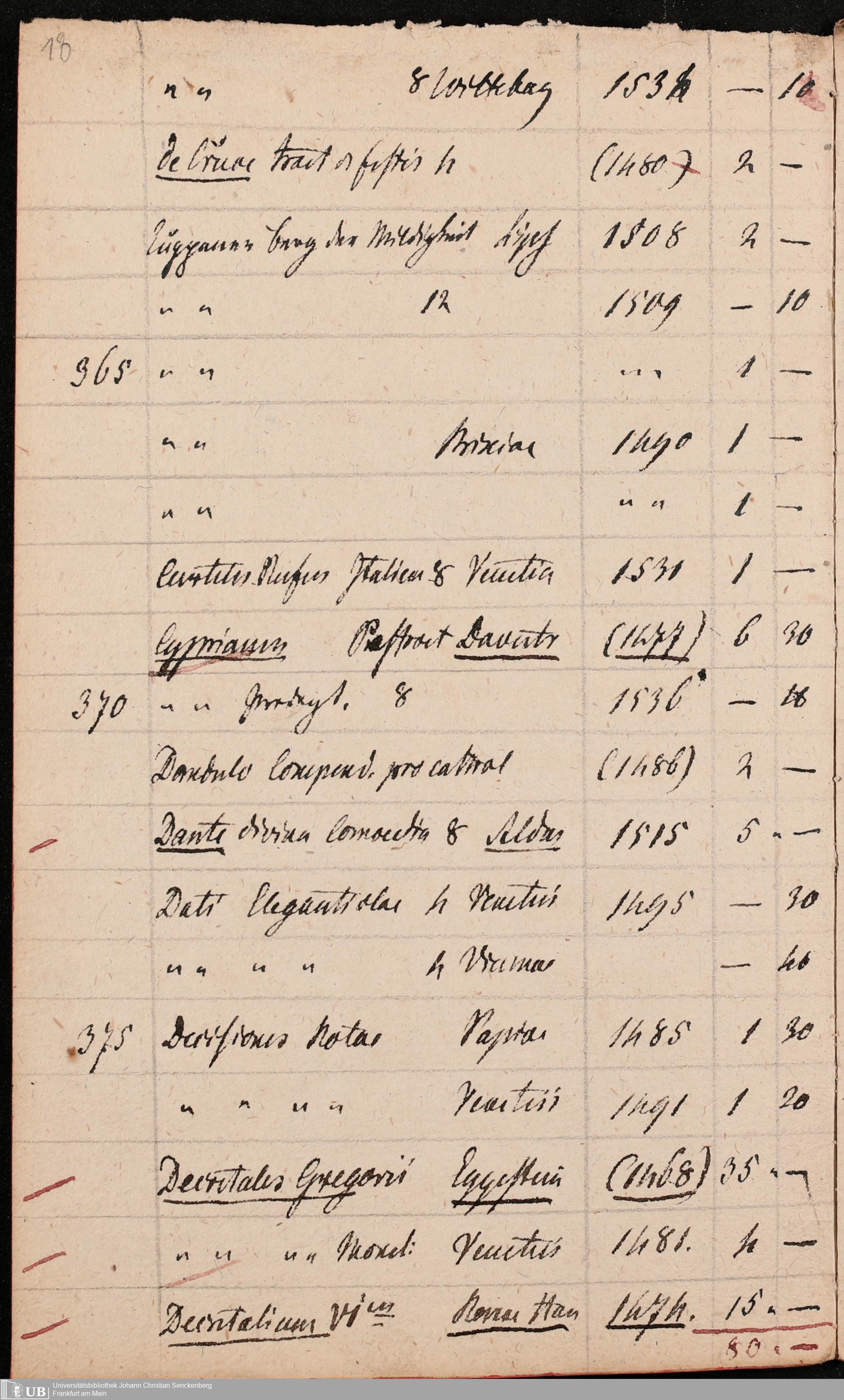 Ms. Ff. G. Kloß Nachlaßergänzung III.1 - Alphabetisches Verzeichnis alter Drucke des 15. und 16. Jahrhunderts