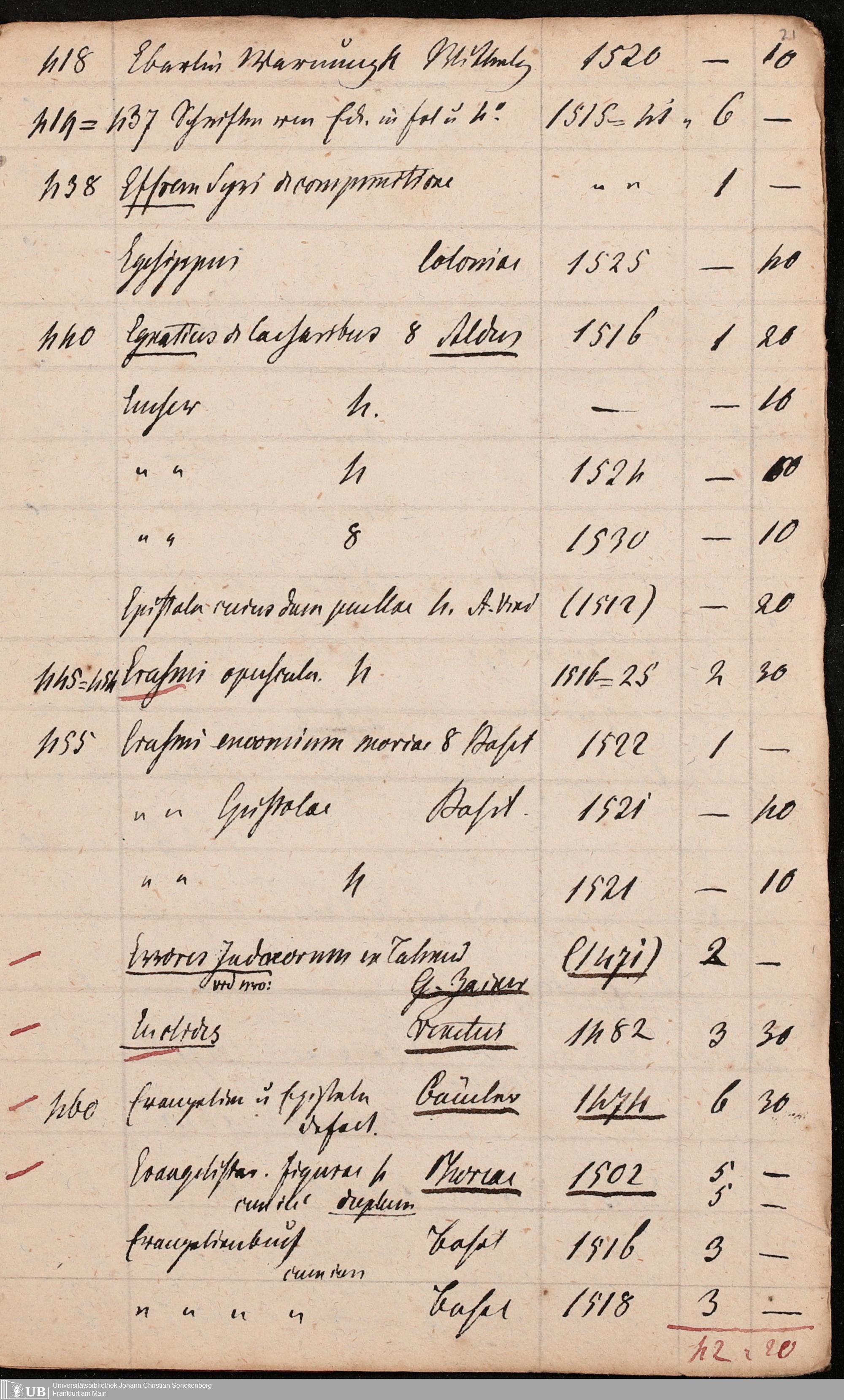 Ms. Ff. G. Kloß Nachlaßergänzung III.1 - Alphabetisches Verzeichnis alter Drucke des 15. und 16. Jahrhunderts