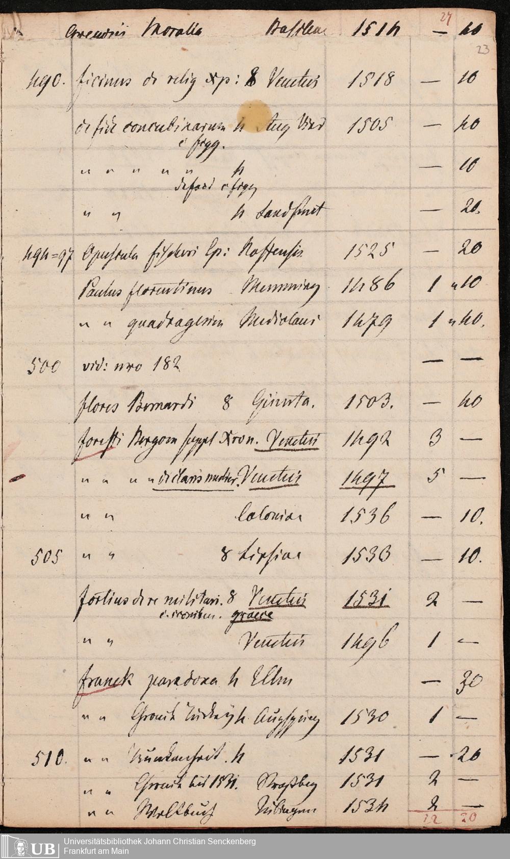 Ms. Ff. G. Kloß Nachlaßergänzung III.1 - Alphabetisches Verzeichnis alter Drucke des 15. und 16. Jahrhunderts