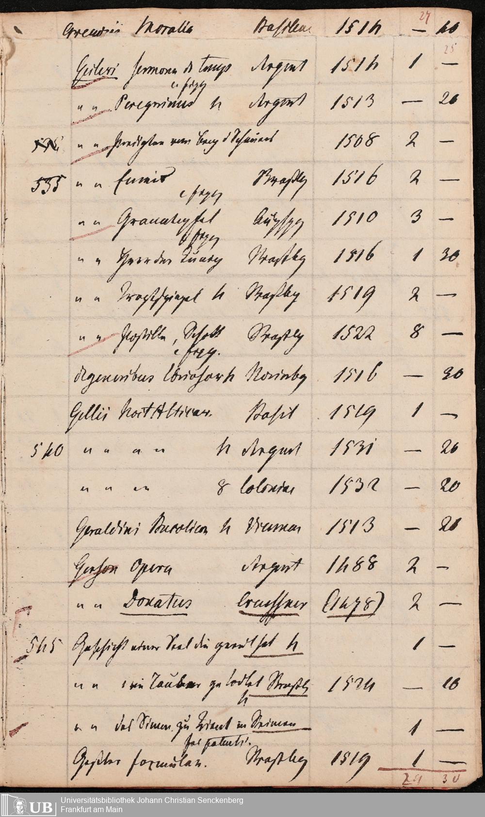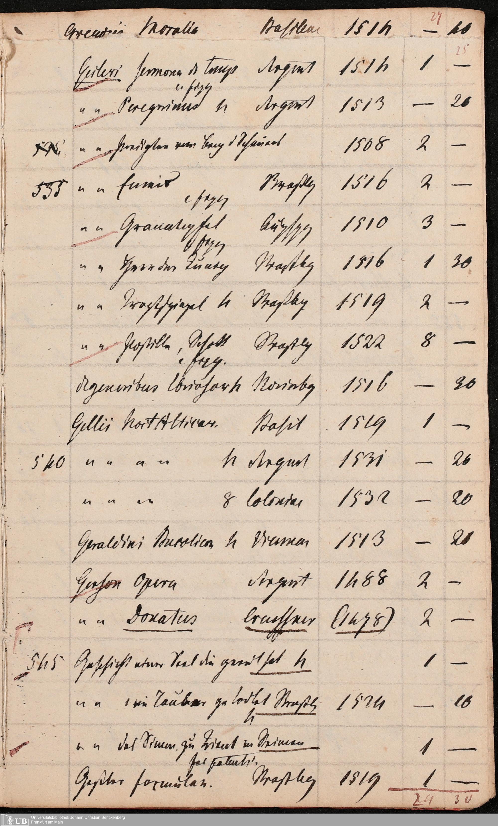 Ms. Ff. G. Kloß Nachlaßergänzung III.1 - Alphabetisches Verzeichnis alter Drucke des 15. und 16. Jahrhunderts