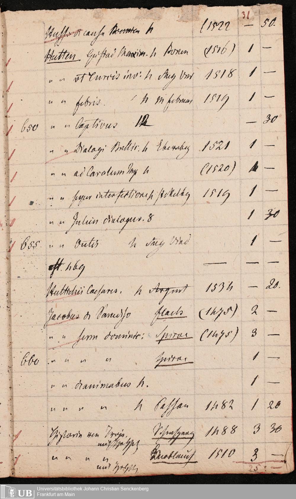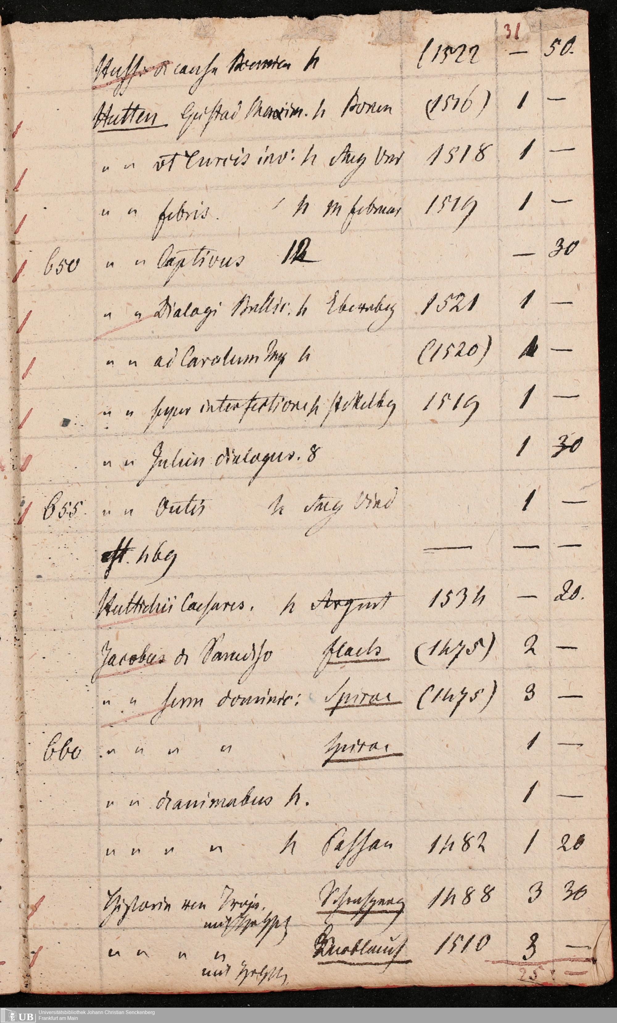 Ms. Ff. G. Kloß Nachlaßergänzung III.1 - Alphabetisches Verzeichnis alter Drucke des 15. und 16. Jahrhunderts