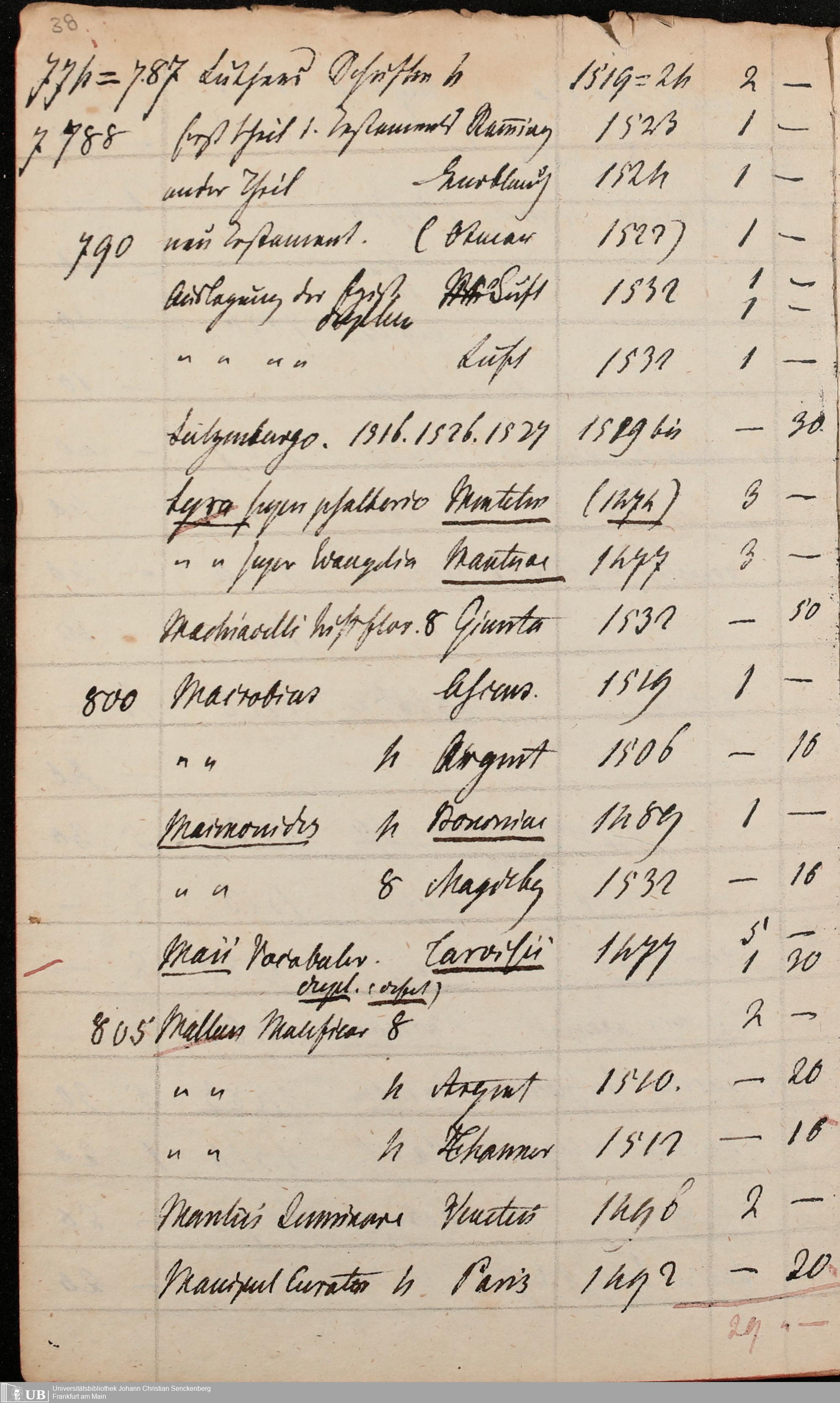 Ms. Ff. G. Kloß Nachlaßergänzung III.1 - Alphabetisches Verzeichnis alter Drucke des 15. und 16. Jahrhunderts