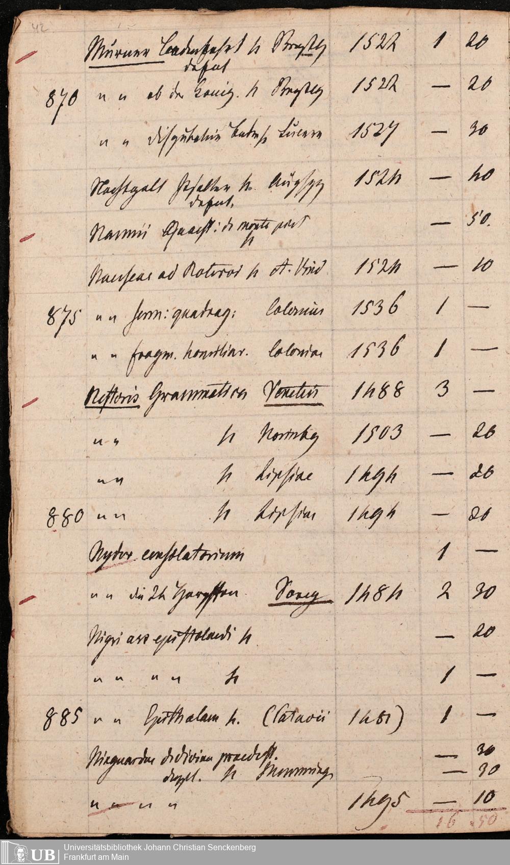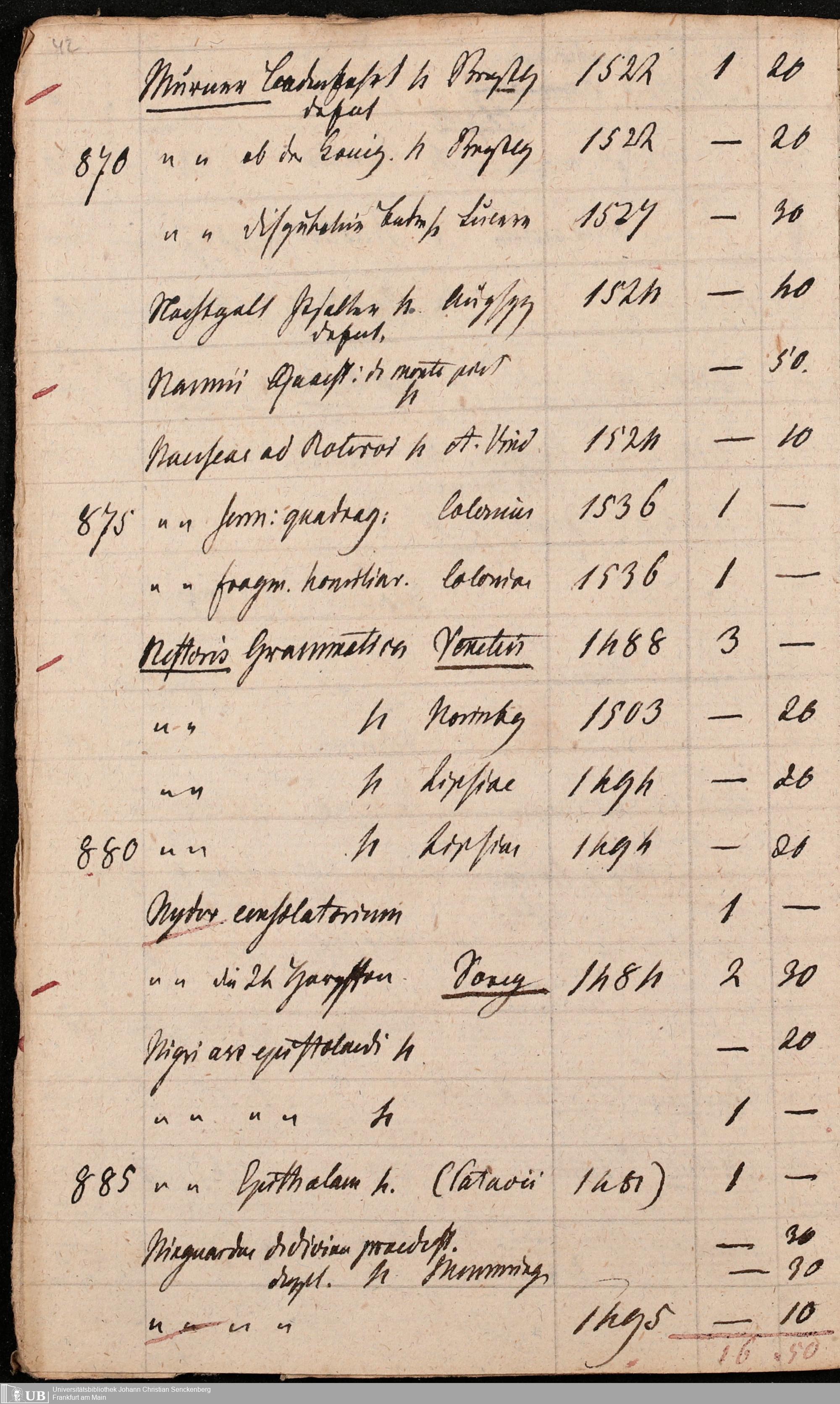 Ms. Ff. G. Kloß Nachlaßergänzung III.1 - Alphabetisches Verzeichnis alter Drucke des 15. und 16. Jahrhunderts