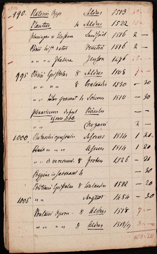 Ms. Ff. G. Kloß Nachlaßergänzung III.1 - Alphabetisches Verzeichnis alter Drucke des 15. und 16. Jahrhunderts