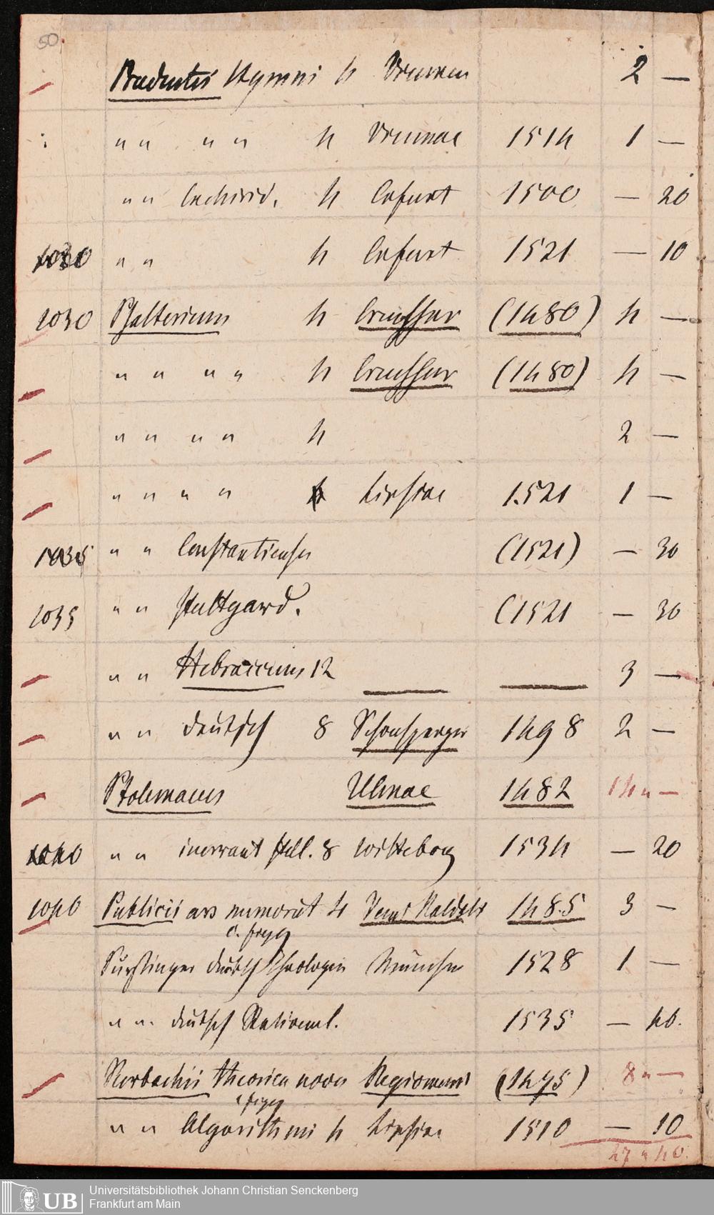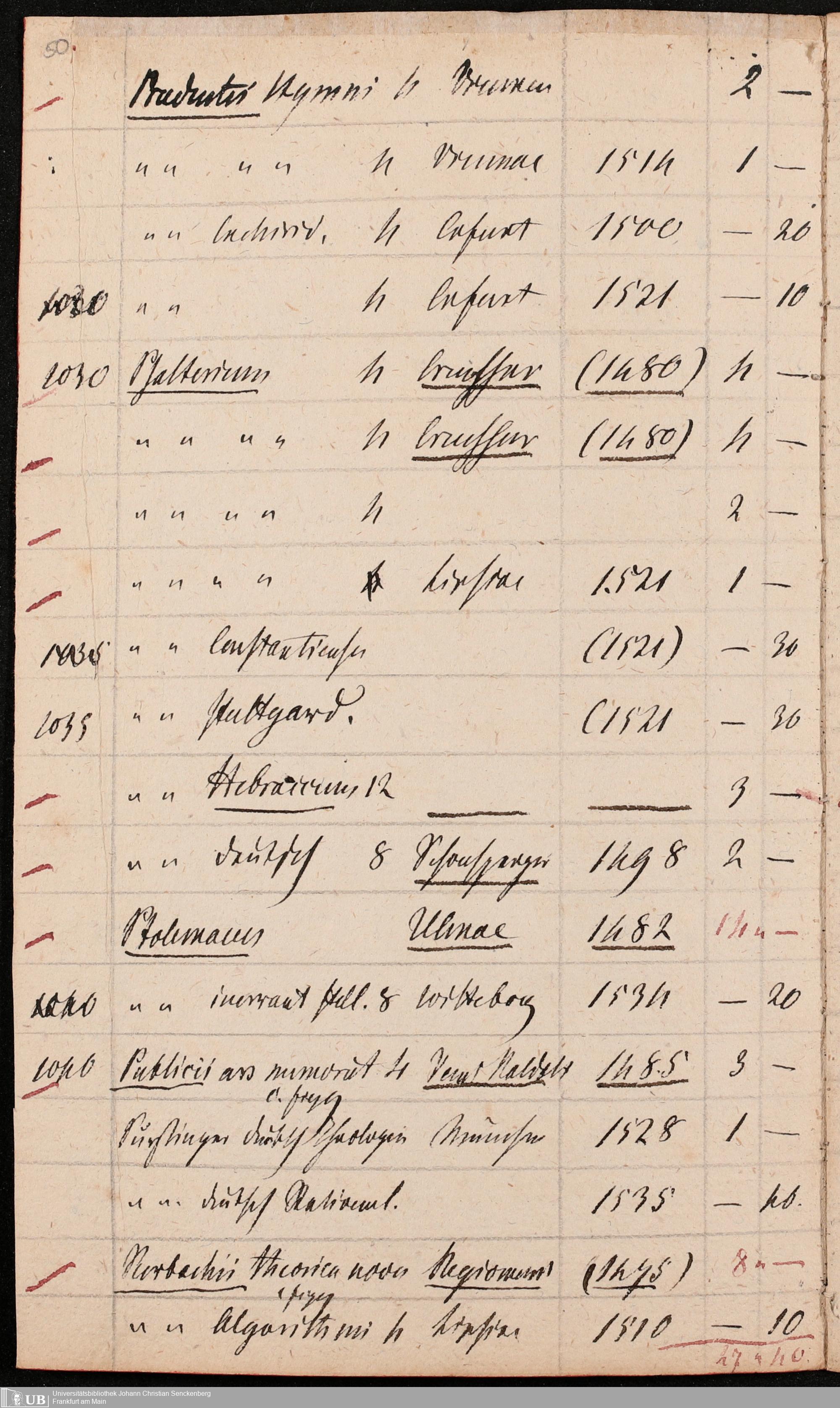 Ms. Ff. G. Kloß Nachlaßergänzung III.1 - Alphabetisches Verzeichnis alter Drucke des 15. und 16. Jahrhunderts