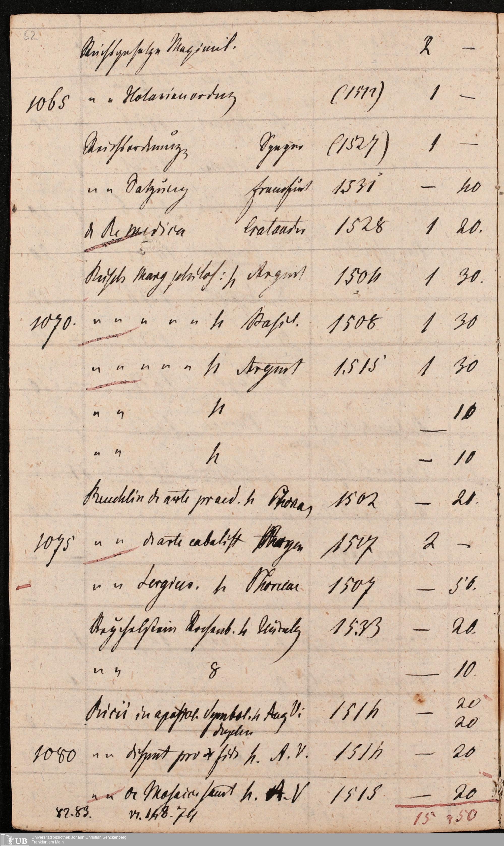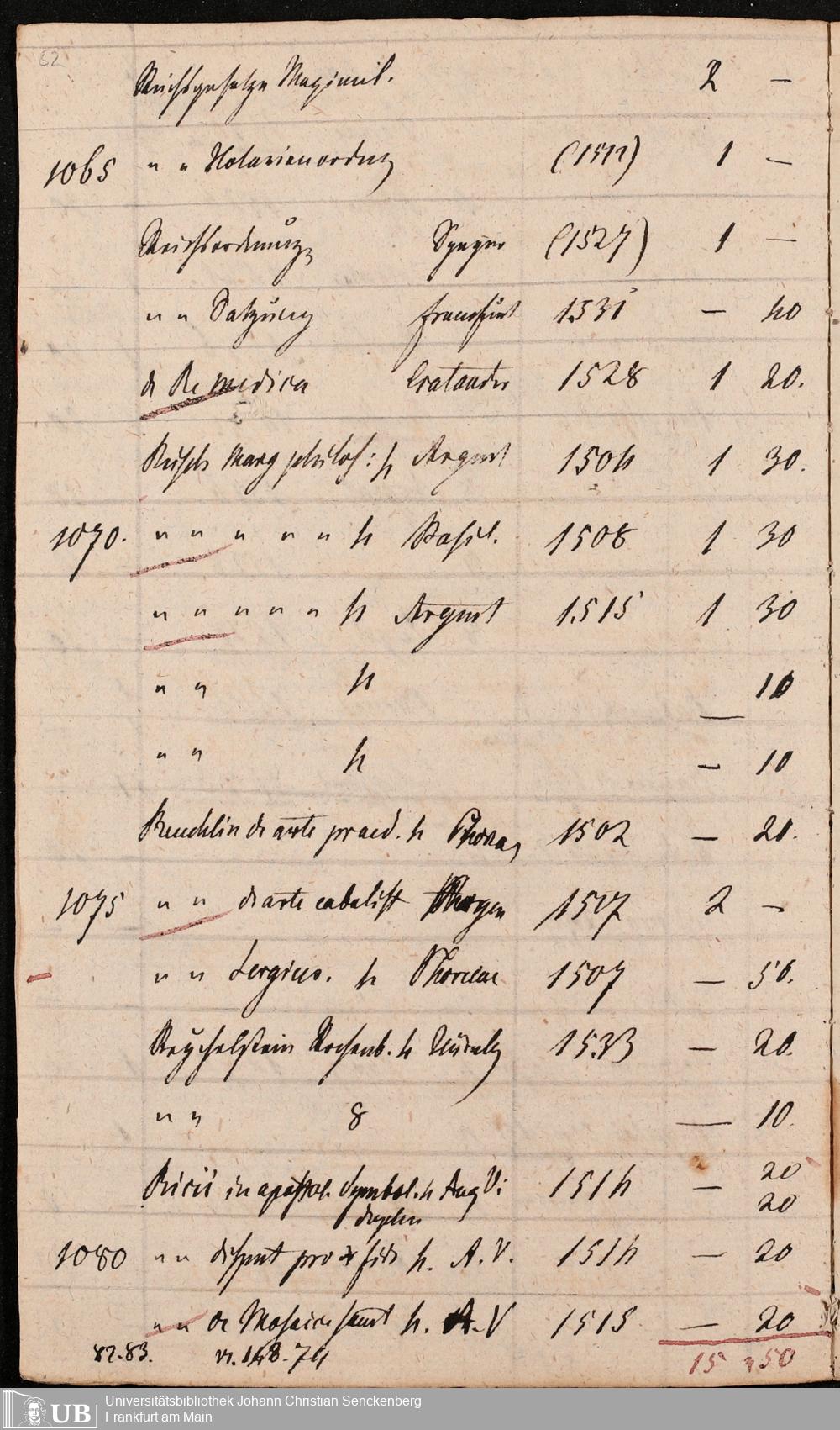 Ms. Ff. G. Kloß Nachlaßergänzung III.1 - Alphabetisches Verzeichnis alter Drucke des 15. und 16. Jahrhunderts