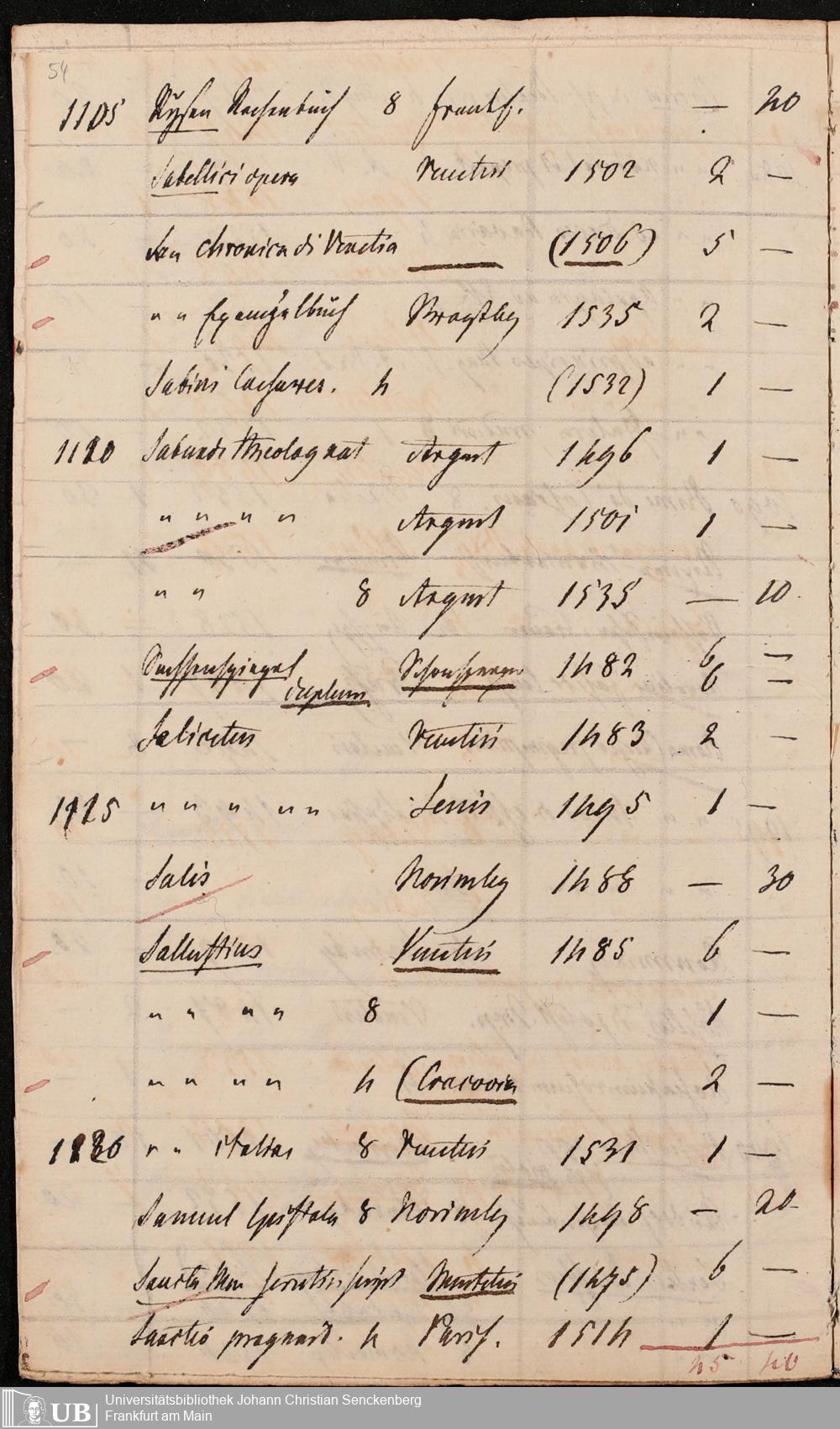 Ms. Ff. G. Kloß Nachlaßergänzung III.1 - Alphabetisches Verzeichnis alter Drucke des 15. und 16. Jahrhunderts