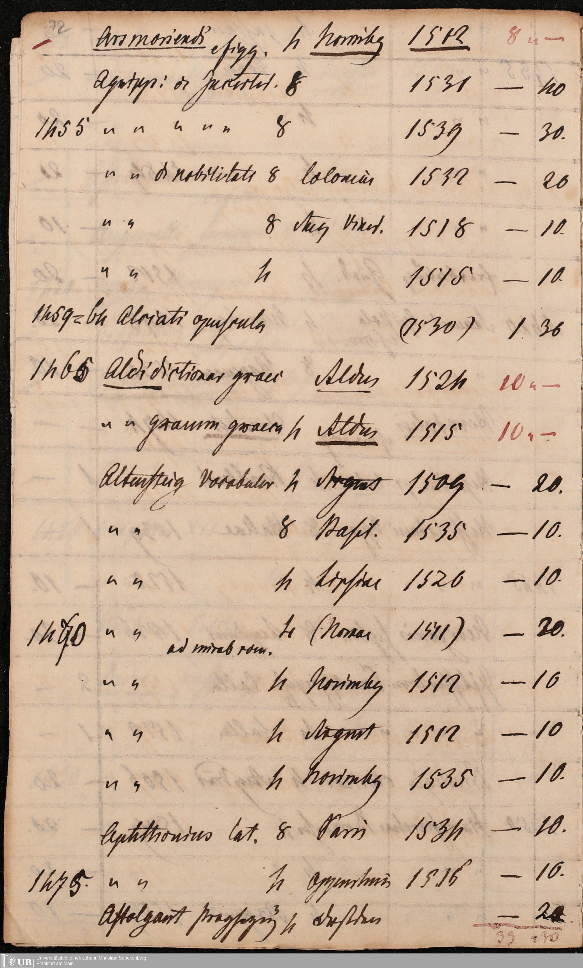 Ms. Ff. G. Kloß Nachlaßergänzung III.1 - Alphabetisches Verzeichnis alter Drucke des 15. und 16. Jahrhunderts