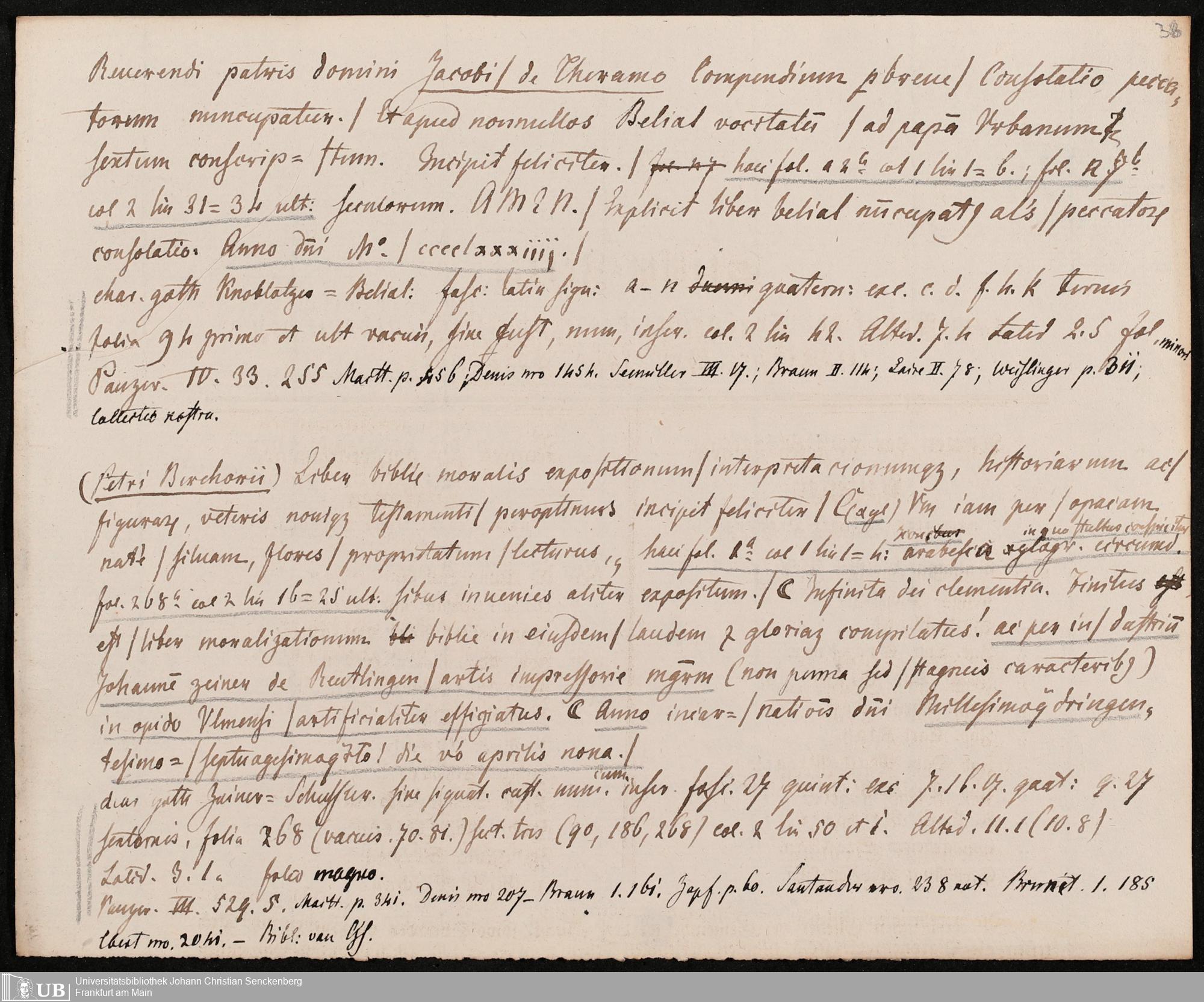 Ms. Ff. G. Kloß Nachlaßergänzung III.2 - Drucke des 15. Jahrhunderts. Buchstabe B