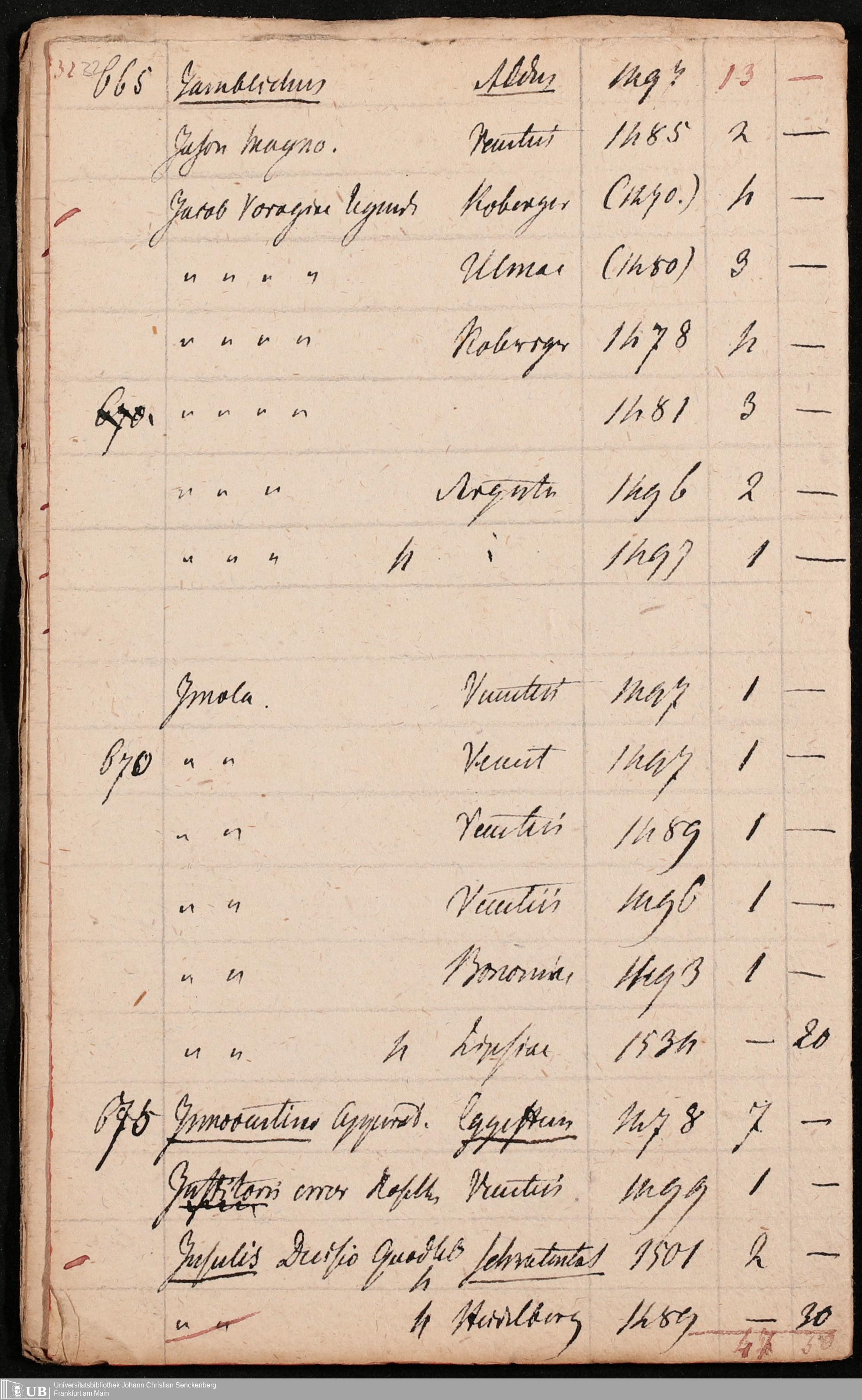 Ms. Ff. G. Kloß Nachlaßergänzung III.1 - Alphabetisches Verzeichnis alter Drucke des 15. und 16. Jahrhunderts