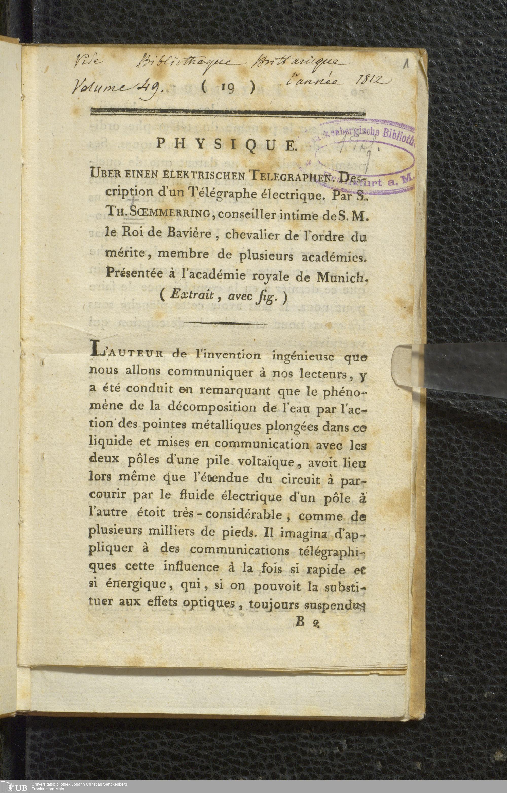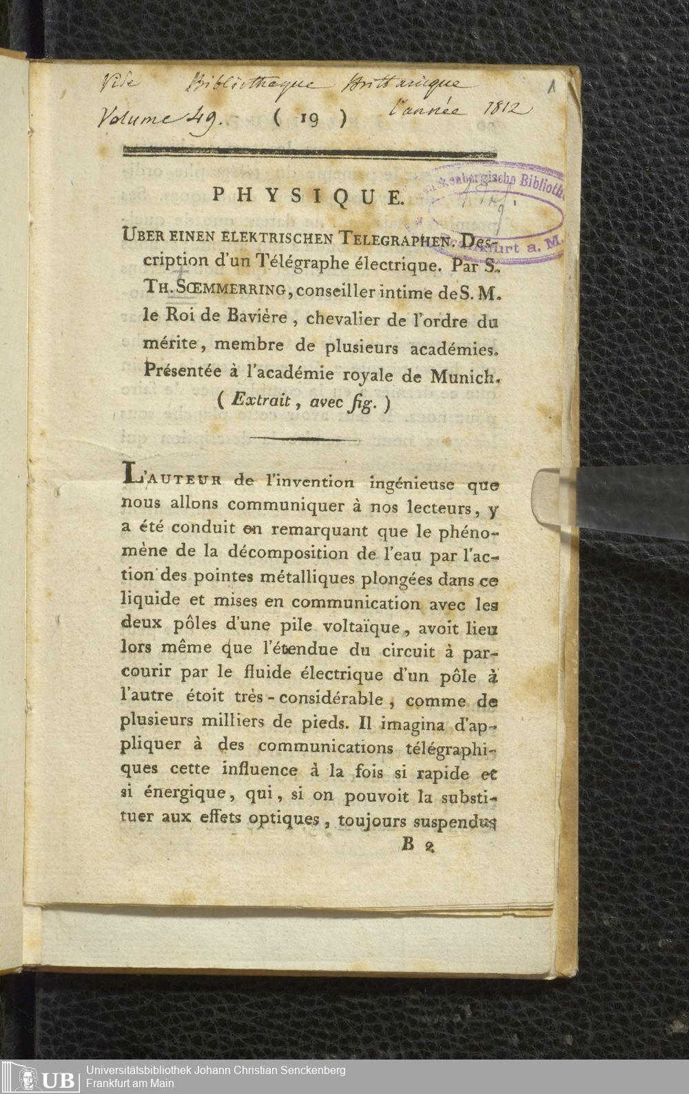 Soe 72 - Über einen elektrischen Telegraphen
