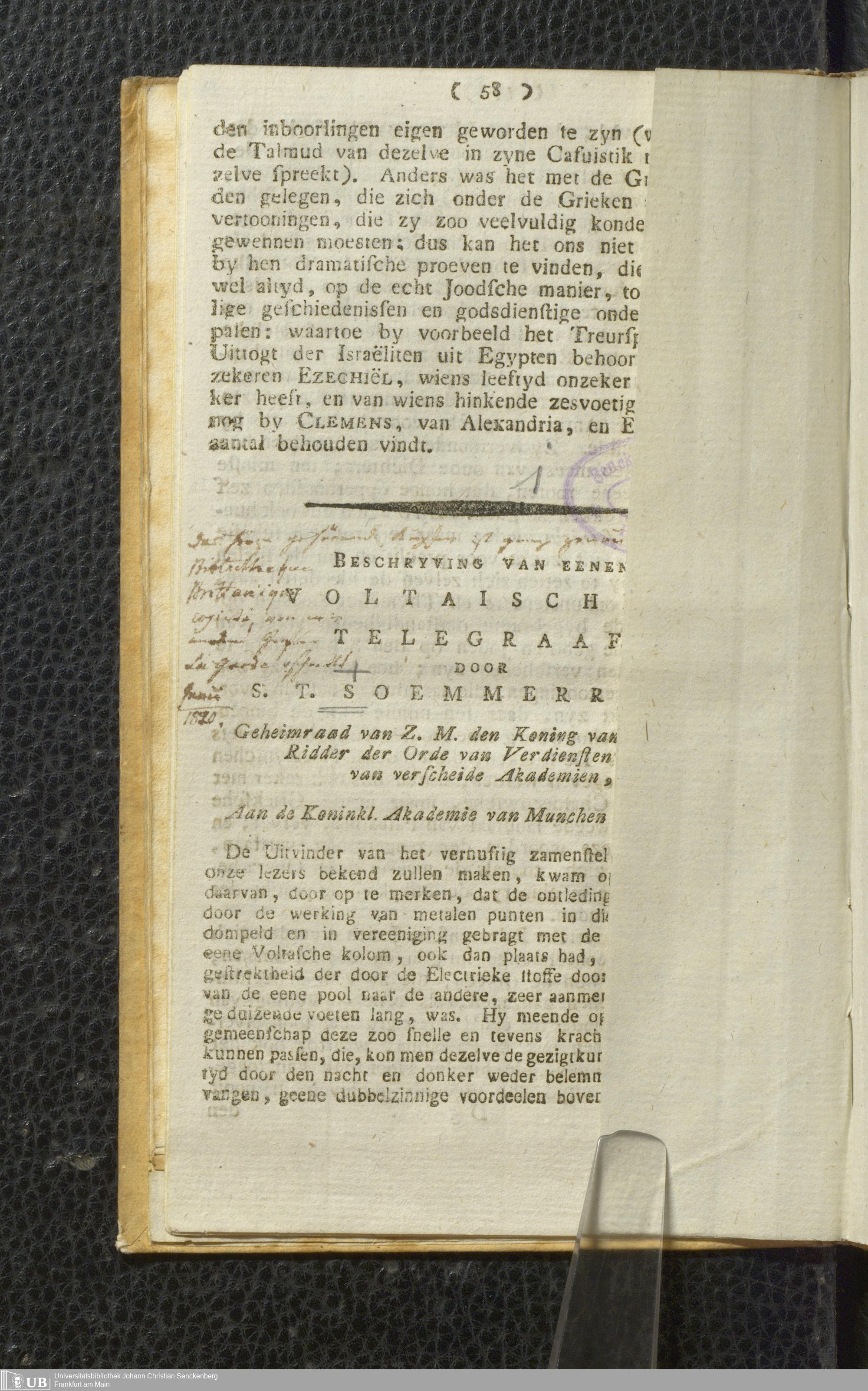 Soe 72 - Über einen elektrischen Telegraphen