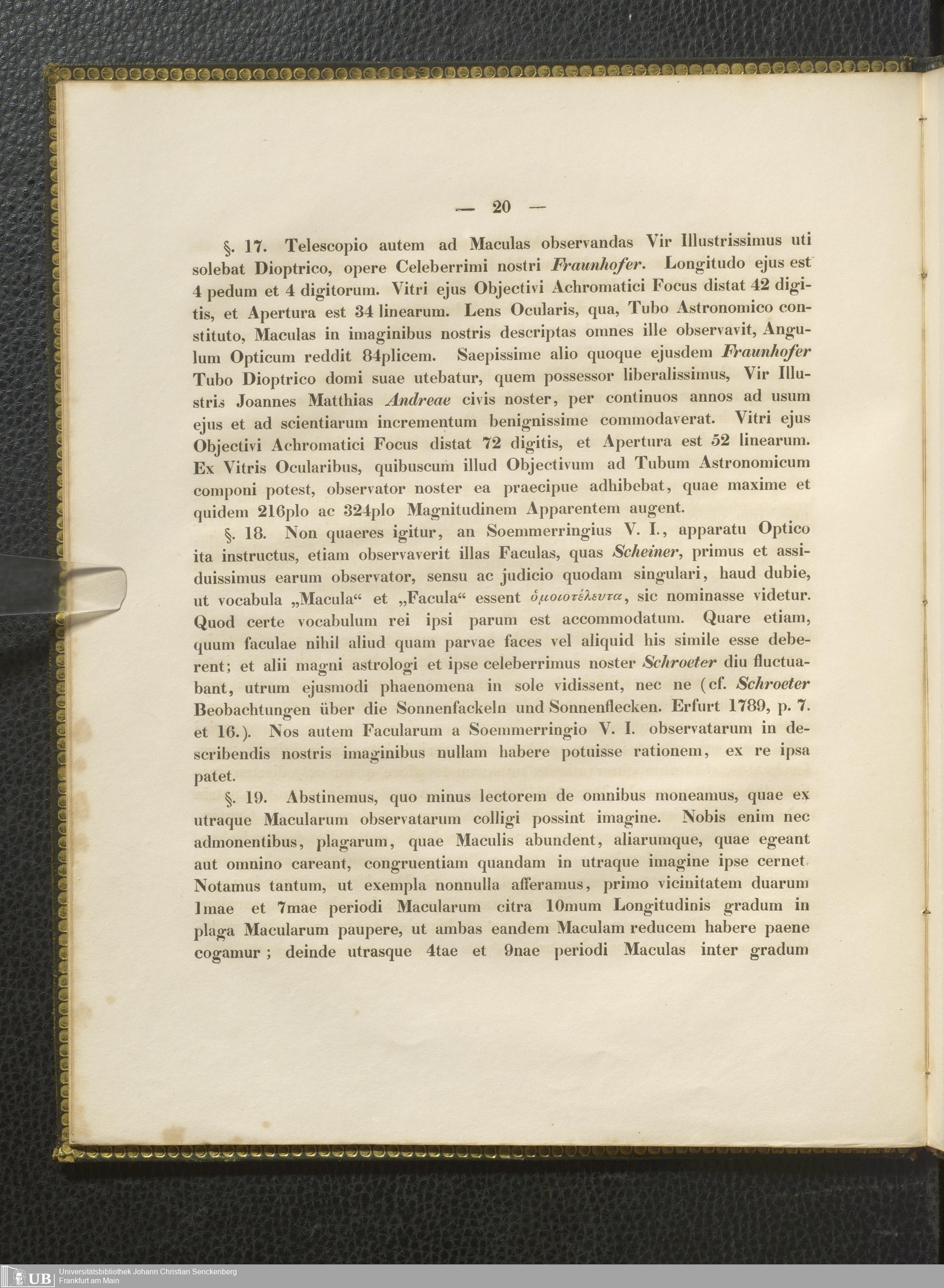 Soe 39 - Dissertatio de solis maculis ab ipso summo viro Soemmerringio observatis. Praemittitur carmen gratulatorium