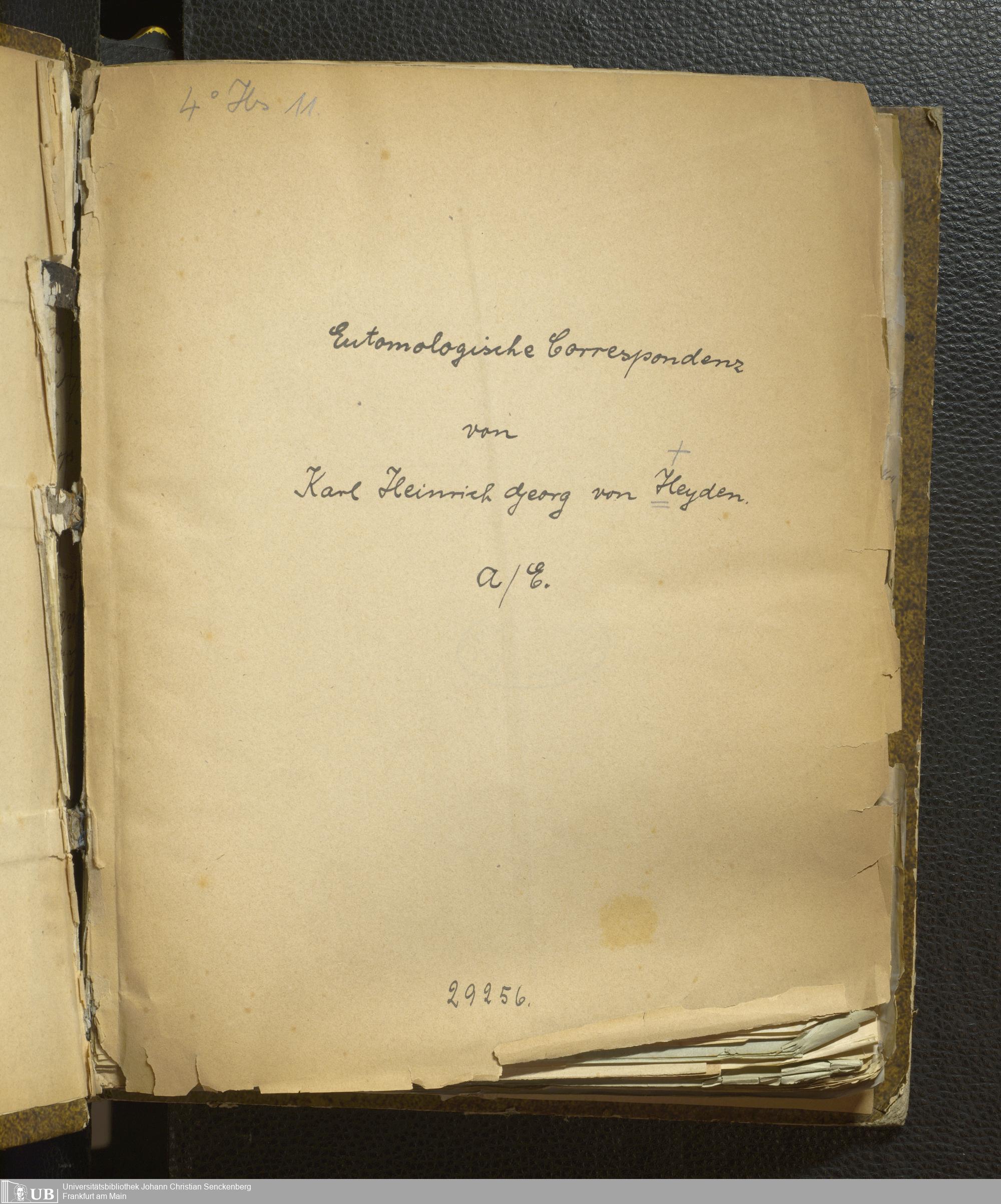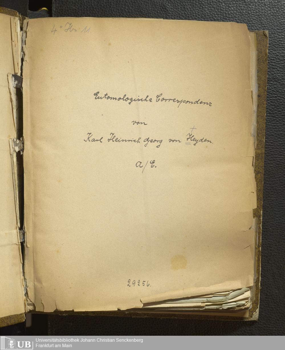 4˚ Hs 11 Bd. 1 - Entomologische Correspondenz von Karl Heinrich Georg von Heyden. A/E