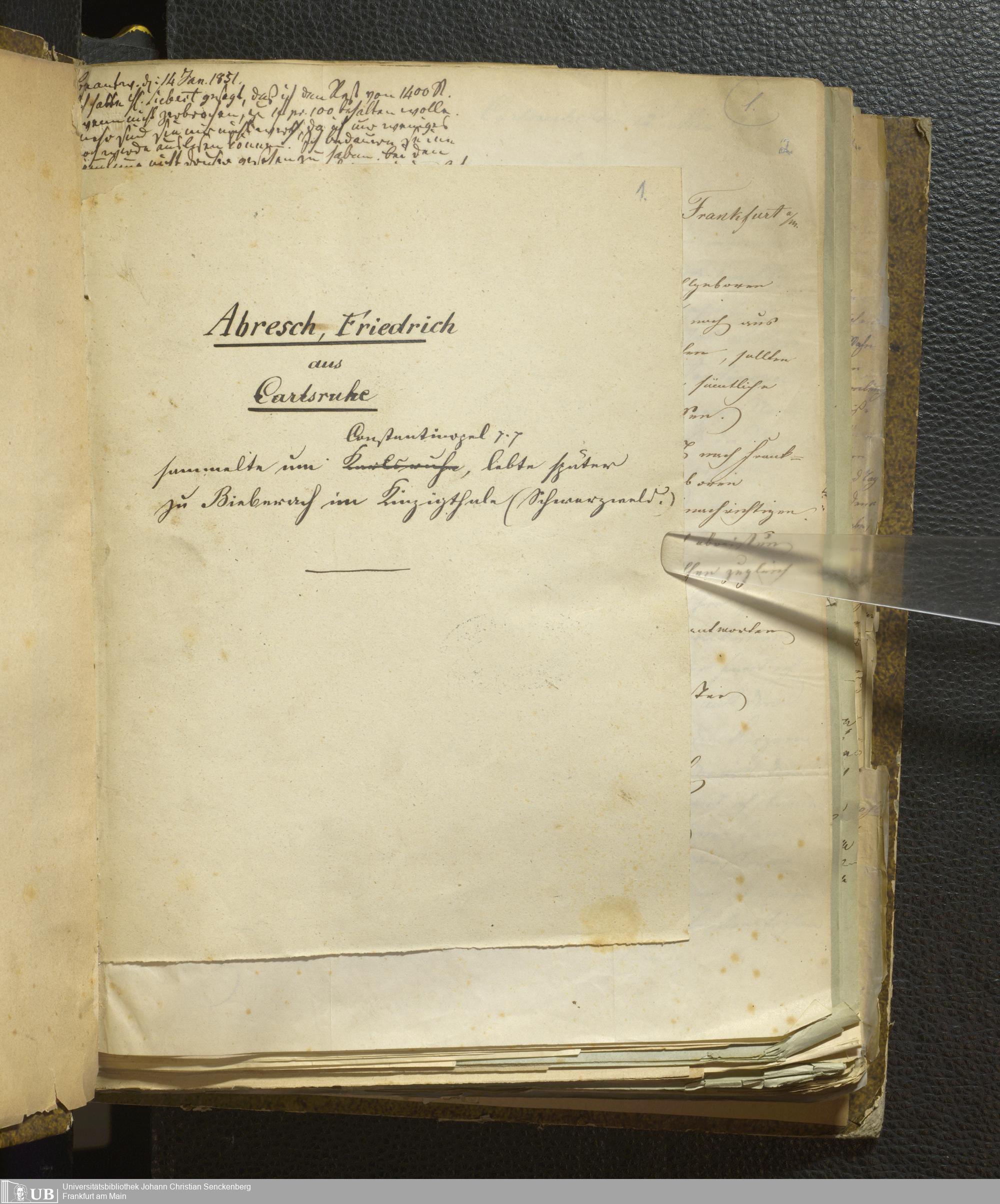 4˚ Hs 11 Bd. 1 - Entomologische Correspondenz von Karl Heinrich Georg von Heyden. A/E