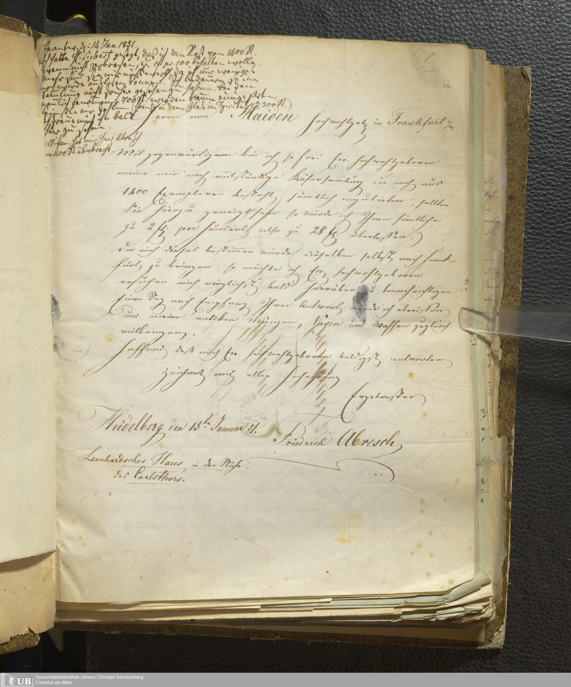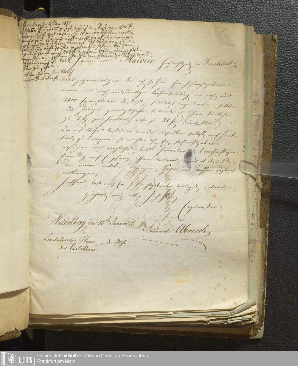 4˚ Hs 11 Bd. 1 - Entomologische Correspondenz von Karl Heinrich Georg von Heyden. A/E