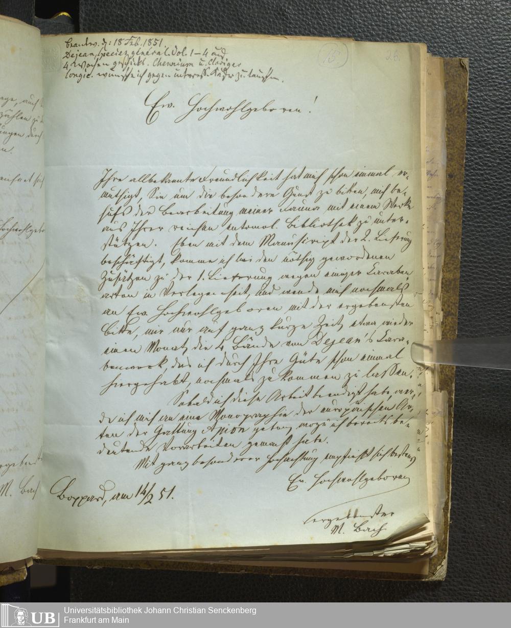 4˚ Hs 11 Bd. 1 - Entomologische Correspondenz von Karl Heinrich Georg von Heyden. A/E