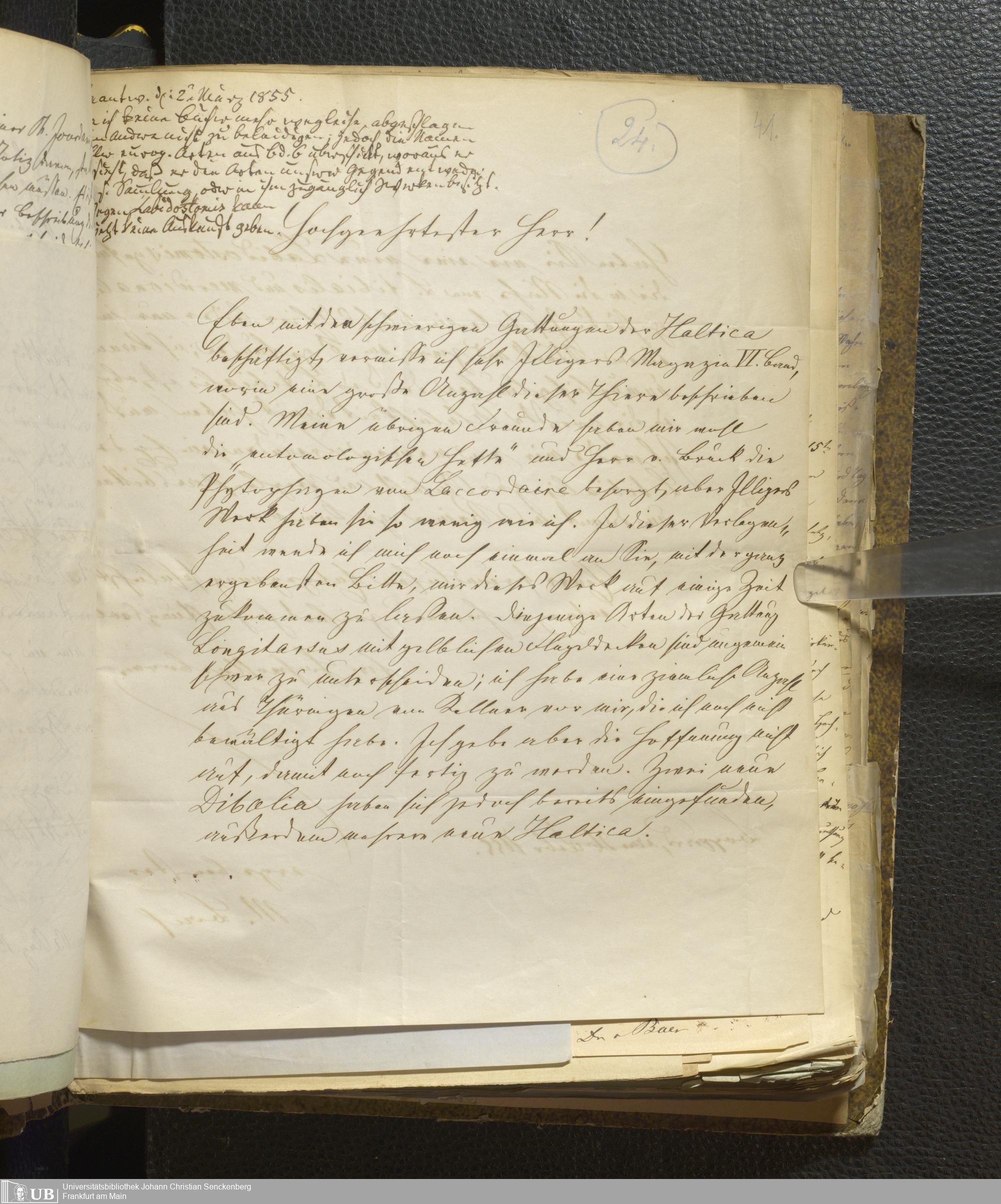 4˚ Hs 11 Bd. 1 - Entomologische Correspondenz von Karl Heinrich Georg von Heyden. A/E
