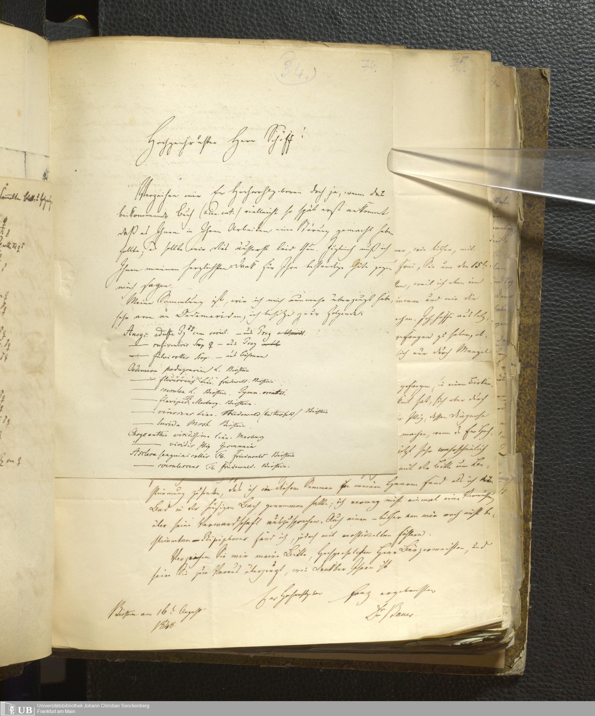 4˚ Hs 11 Bd. 1 - Entomologische Correspondenz von Karl Heinrich Georg von Heyden. A/E