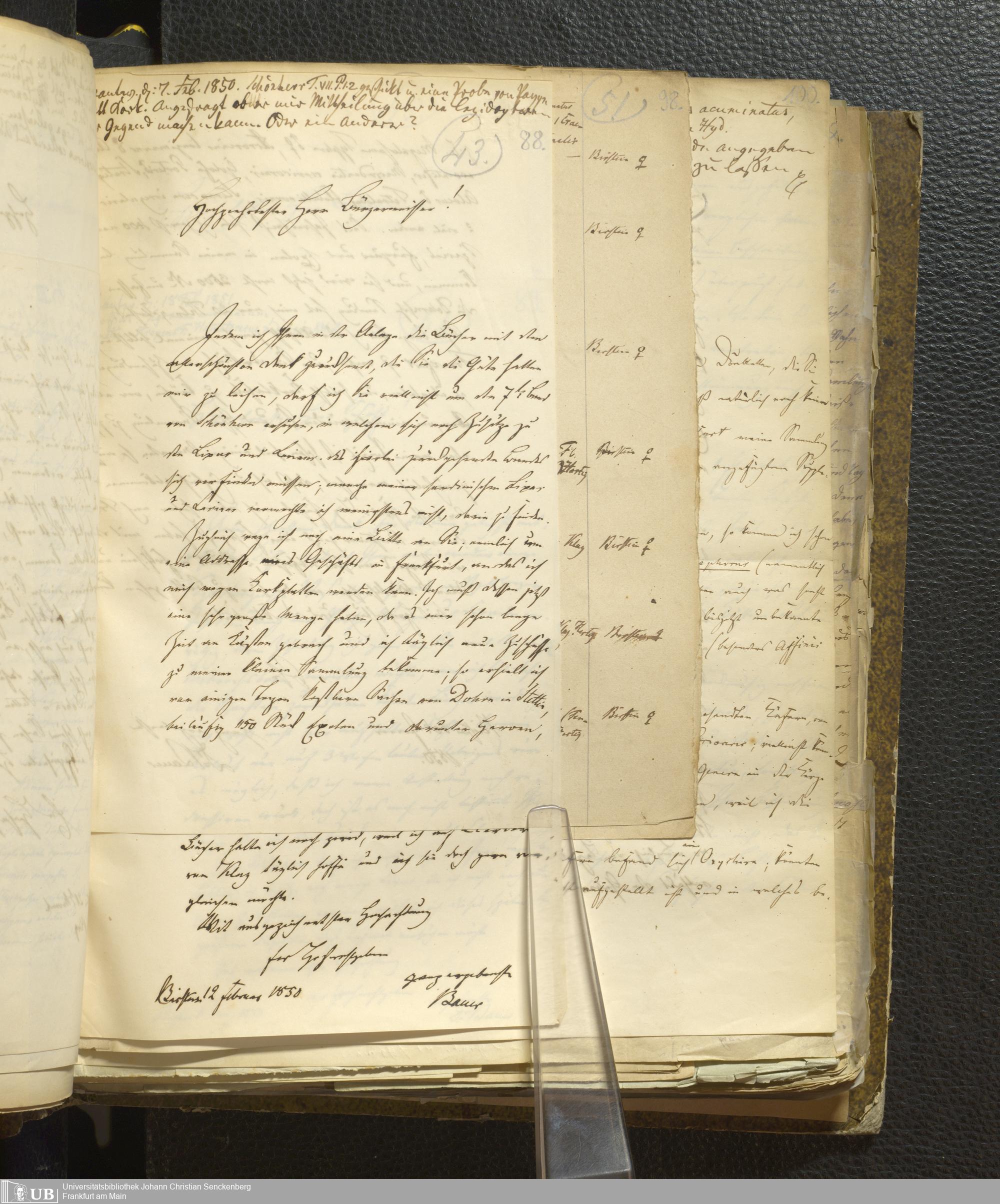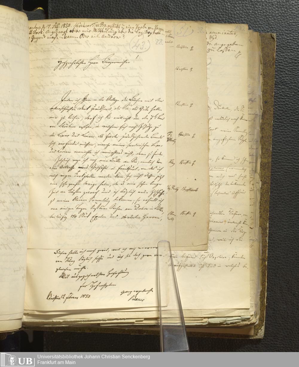 4˚ Hs 11 Bd. 1 - Entomologische Correspondenz von Karl Heinrich Georg von Heyden. A/E