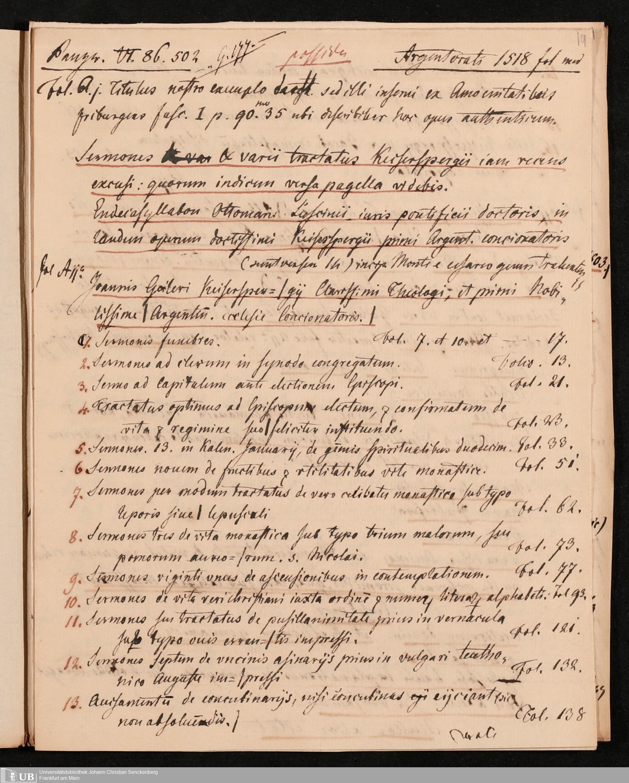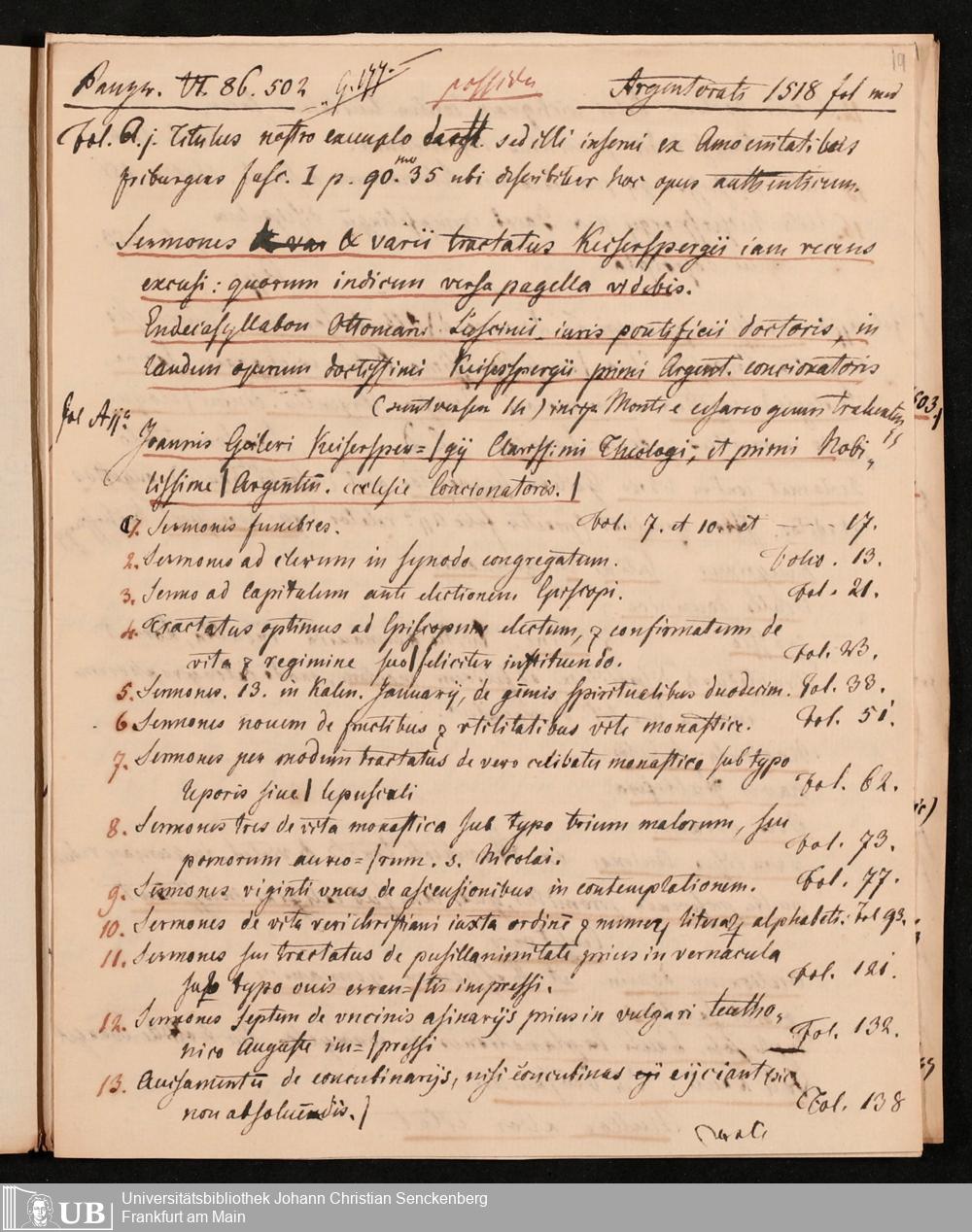 Ms. Ff. G. Kloß Nachlaßergänzung III.5 - Schriften von Gailer von Kaysersberg
